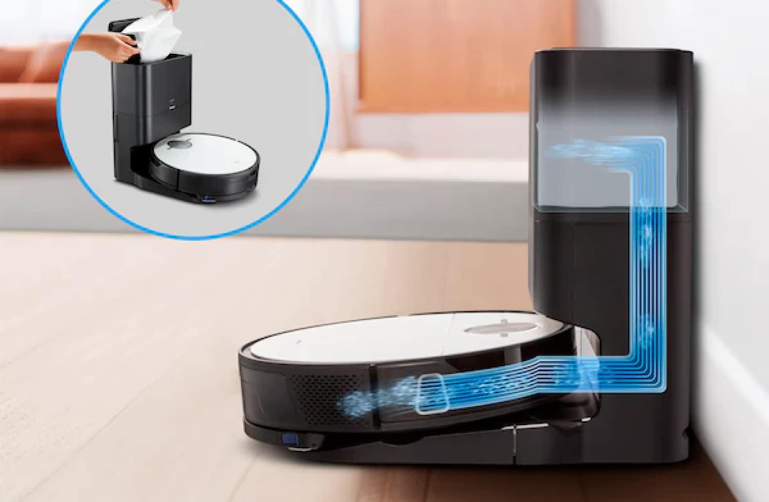 Sehr praktisch ist die im Lieferumfang enthaltene Absaugstation. Diese sorgt dafür, dass du den Staubbehälter des Roboters nicht mehr von Hand entleeren musst. Gerade in Haushalten mit Tieren, in denen vermehrt Schmutz entsteht, ist solch eine Absaugstation ein wahrer Segen.
