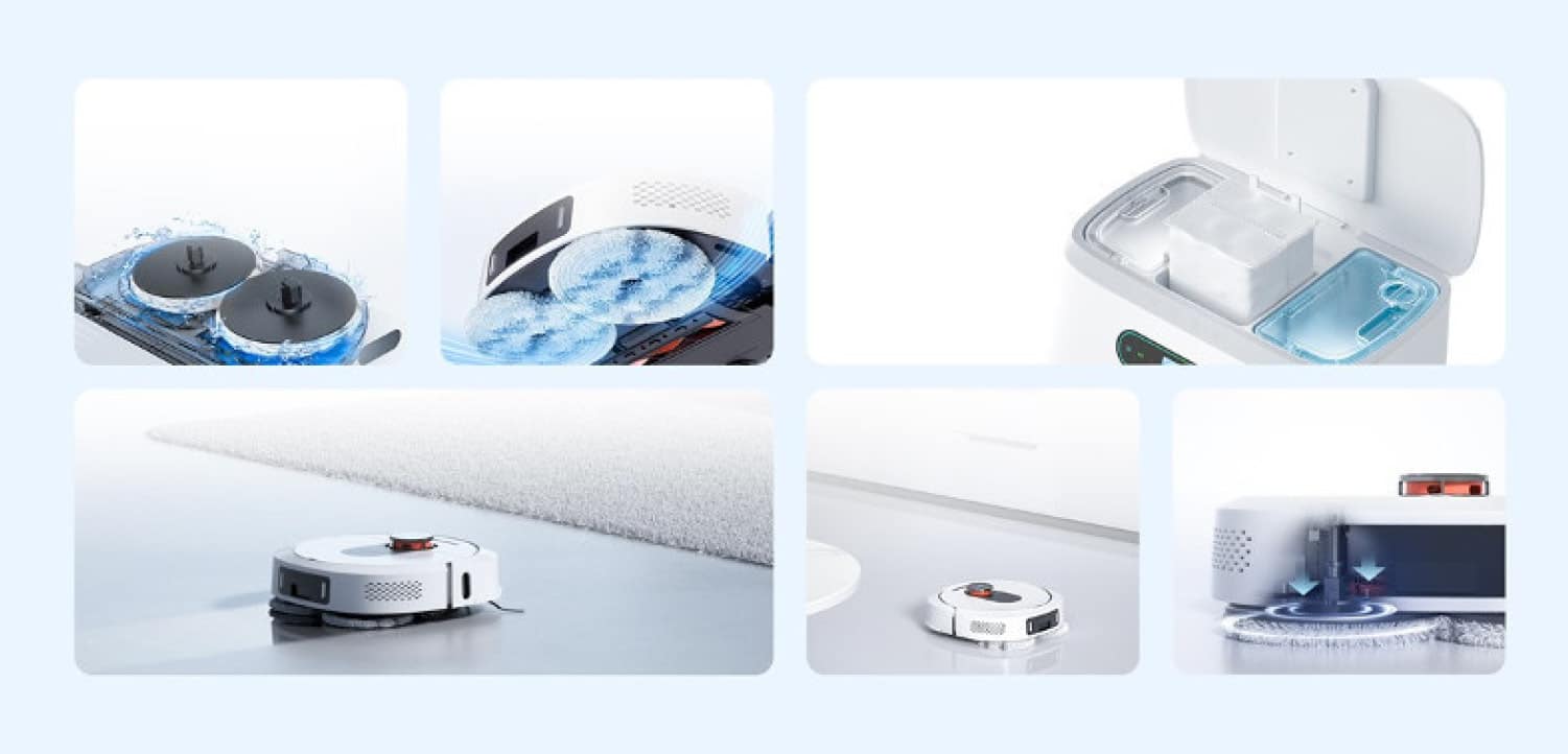 Der Roidmi EVA ist nicht nur ein intelligenter und starker Laser-Saugroboter, sondern auch ein hervorragender Bodenwischer. Er wischt deinen Boden kontinuierlich dank rotierender Wischmopps und wäscht diese gelegentlich während und immer nach der Reinigung mit frischem Wasser aus.