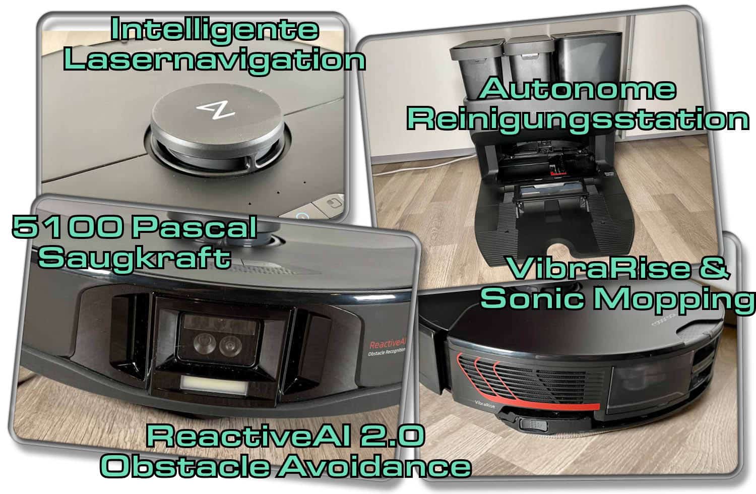 Das Wischpad vibriert dabei 3000 Mal die Minute. Ebenso ist er bestückt mit einer 5100 Pascal starken Saugkraft, einer intelligenten Laser-Navigation, einer Vollgummibodenbürste und einer hervorragenden Obstacle Avoidance, die Roborock Reactive AI 2.0 nennt.