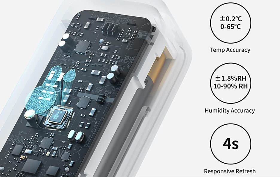 Im Inneren werkelt ein hochwertiger Swiss Sensirion Sensor, der präzise Daten erfasst. Alle Daten werden in die SwitchBot-App für einen schnellen Abruf gesendet. Das Gerät speichert bis zu 68 Tage lang deine Daten, auch ohne eine Verbindung und in Kombination mit einem SwitchBot Hub sogar über 2 Jahre. Wenn du mehrere Geräte von SwitchBot hast, dann kannst du damit sogar Automationen auslösen. Siri-Kurzbefehle, IFTTT, Alexa und Google sind bereits mit an Bord.