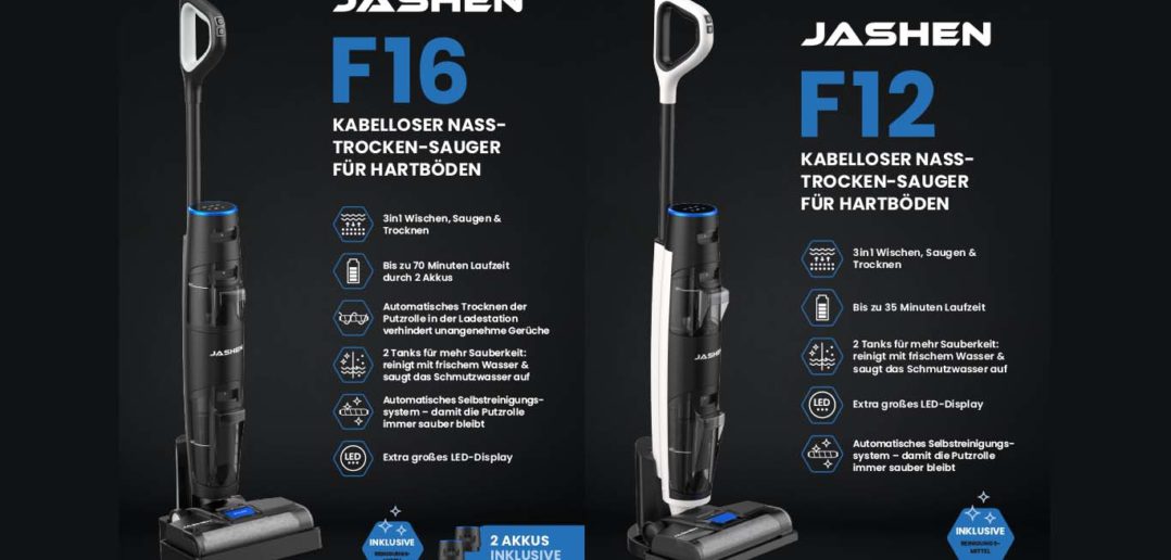 Heute hat Jashen offiziell den Verkaufsstart des der beiden Wischsauger Jashen F12 und Jashen F16 bekannt gegeben. Der F16 besitzt in seiner Basis eine Bürstentrocknung und ist mit gleich zwei Akkus für eine Reinigungsdauer von bis zu 70 Minuten ausgestattet. Zur Feier des Tages habt ihr die Möglichkeit, mehrere Wischsauger zu gewinnen. Zusammen mit Jashen verlosen wir einen Jashen F16 und zwei Jashen F12.