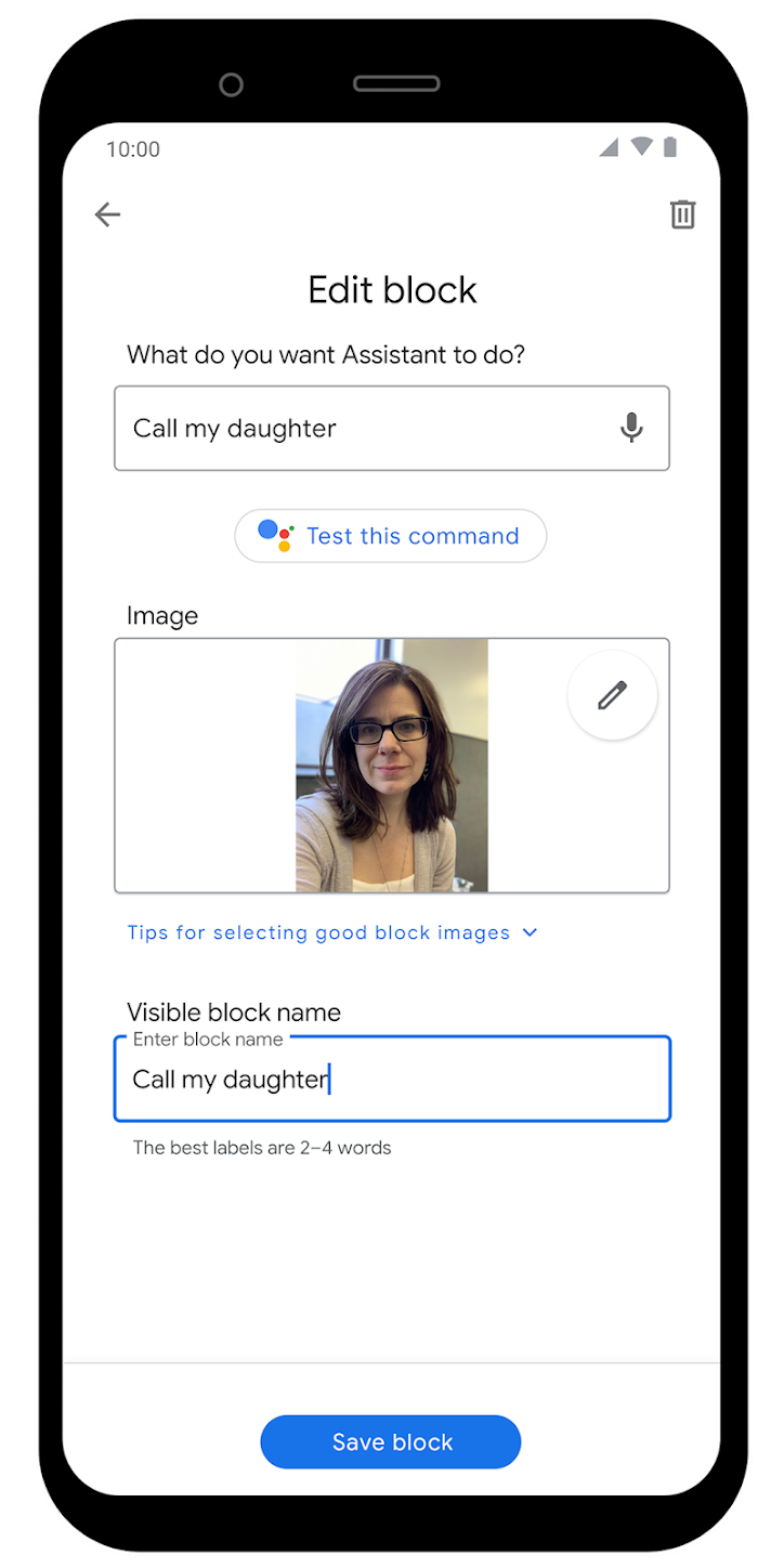 Die App Action Blocks arbeitet mit dem Google Assistant zusammen. Hier kann man als Nutzer bestimmte Shortcuts mit personalisierten Bildern einrichten, die beim Antippen dann verschiedene Aktionen des Google Assistants auslösen. So können zum Beispiel Videoanrufe, Nachrichten oder einfach die Frage nach dem aktuellen Wetter per Klick auf einen Homescreen-Shortcut ausgelöst werden.