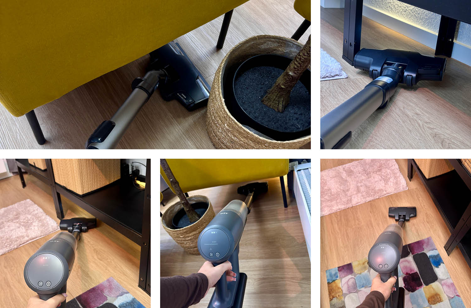Der AEG 8000 Ultimate zeigt sich im Alltag sehr flexibel und wendig. Durch die gute Gewichtsverteilung und den angenehm geformten Griff lässt er sich leicht manövrieren. Besonders praktisch: Er kommt problemlos unter Möbel und reinigt auch schwer zugängliche Stellen zuverlässig. Mit den verschiedenen Aufsätzen ist er zudem schnell an unterschiedliche Einsatzbereiche angepasst.
