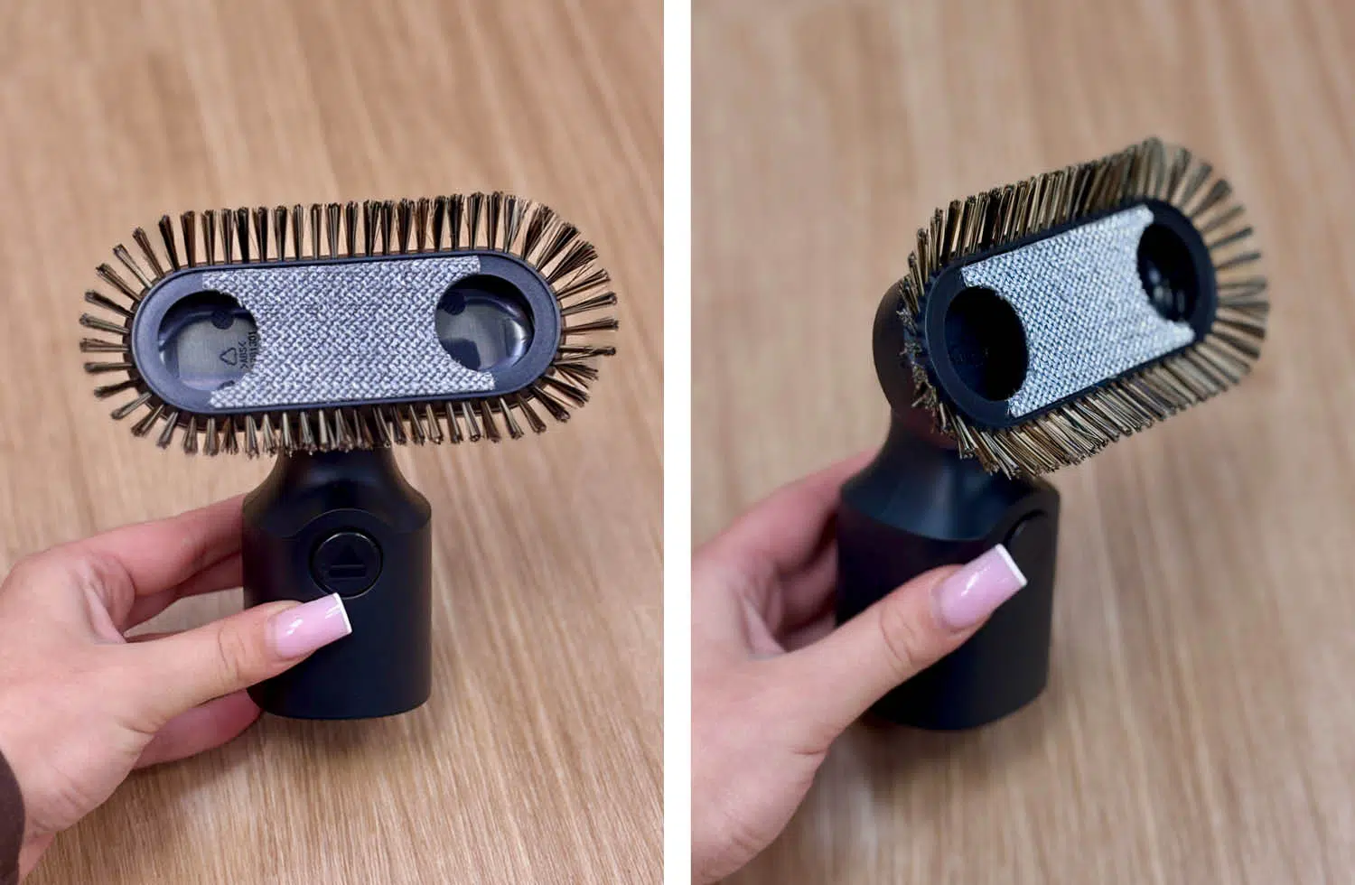 Die Multibürste ist universeller einsetzbar und eignet sich sowohl für Teppiche als auch für Hartböden. Ein echtes Highlight ist hier die BrushRoll-Funktion. Beim Betätigen können verhedderte Haare zerschnitten werden.