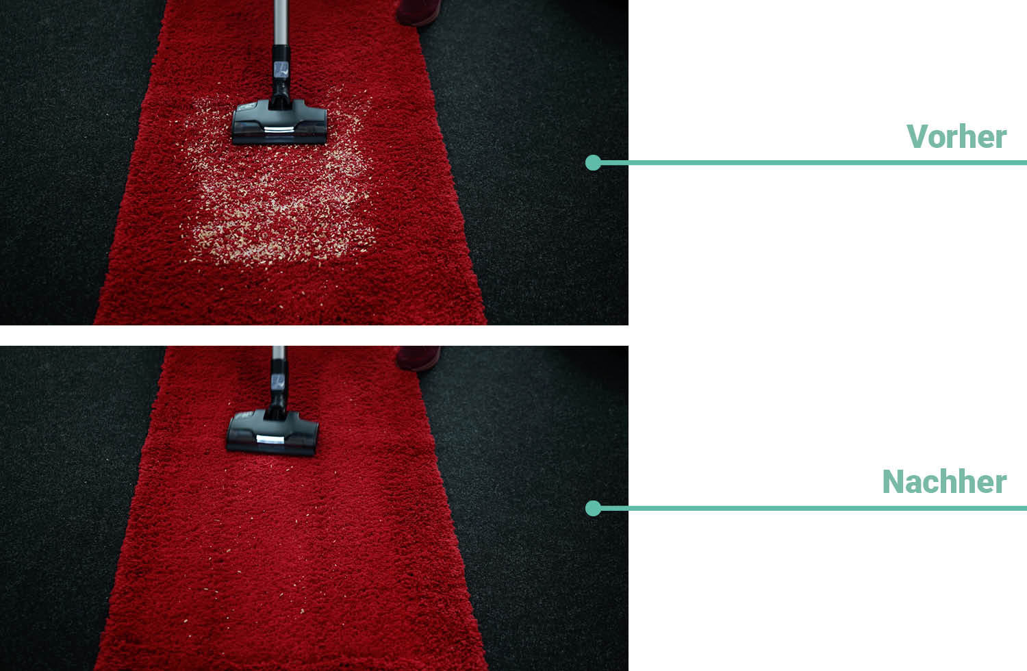 - Reinigunsgleistung auf Teppich nur solide