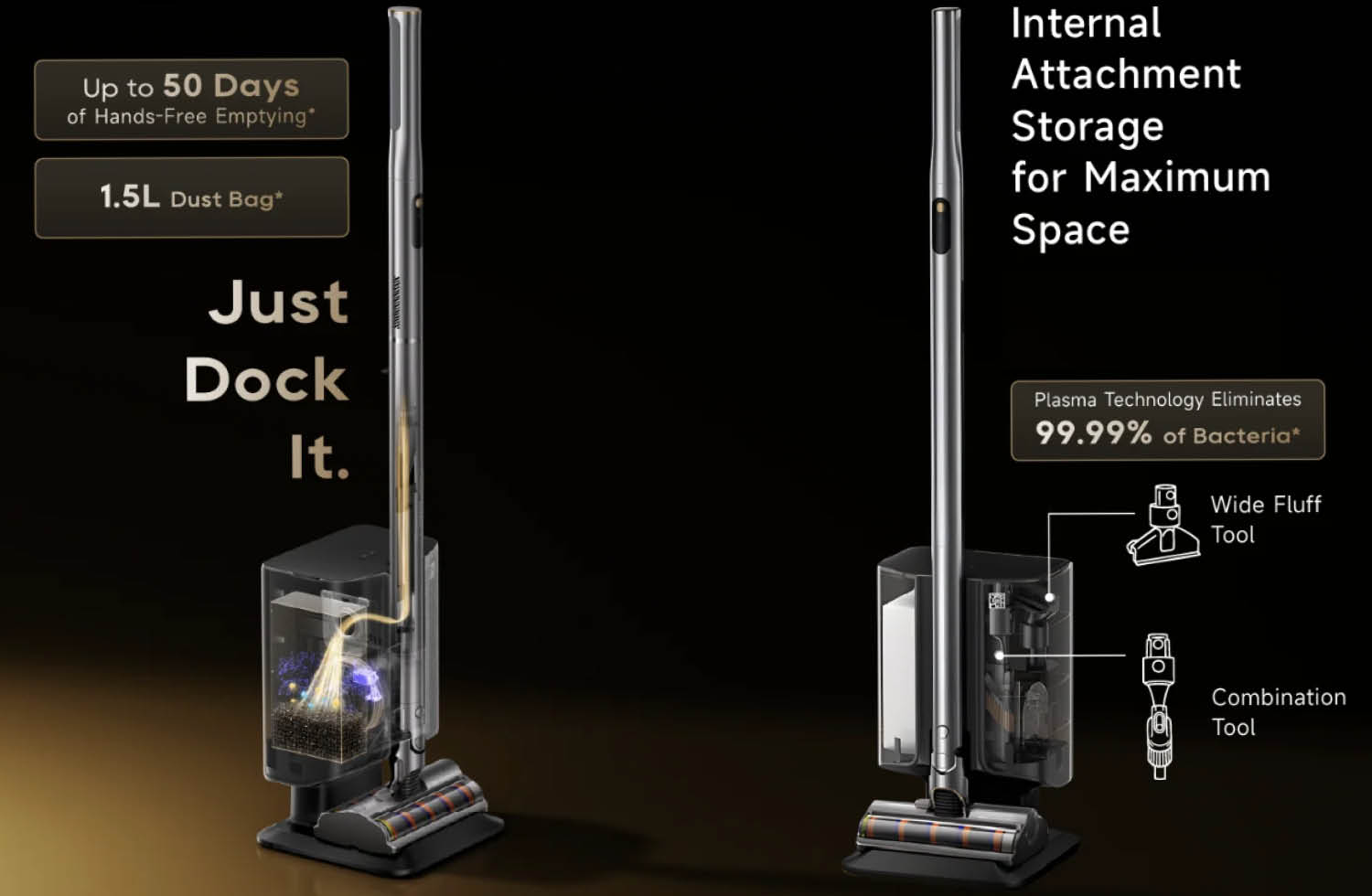 Gerade bei schlanken Geräten ist der Staubbehälter oft sehr klein. Die Absaugstation soll dieses Problem lösen, indem sie den Staubbehälter automatisch entleert und so den Wartungsaufwand deutlich reduziert. Zusätzlich setzt Dreame auf Features wie ein Anti-Haar-System sowie eine Staubkompression, um das Entleeren weiter zu minimieren.