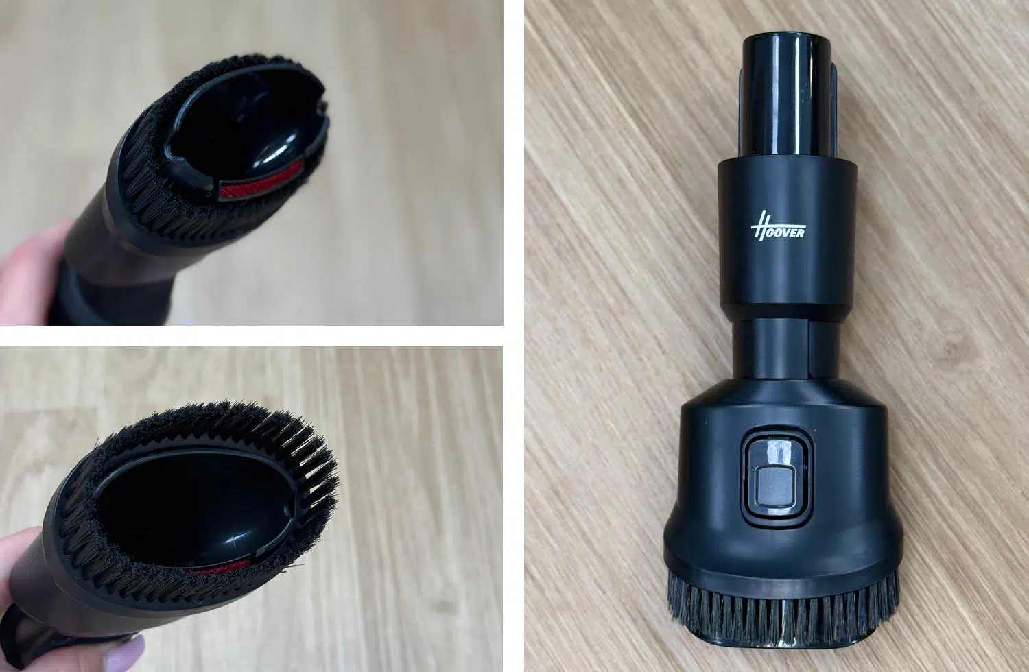 Die 2-in-1-Bürste des Hoover HF6 kombiniert eine schmale Fugendüse mit einer ausklappbaren Bürstenleiste. Damit eignet sie sich besonders für empfindliche Oberflächen wie Regale, Tische, Tastaturen oder Polstermöbel. Je nach Einsatz lässt sich schnell zwischen direkter Saugöffnung und Bürstenaufsatz wechseln. In der Praxis ist die Düse vor allem für die schnelle Reinigung zwischendurch hilfreich und erweitert den Einsatzbereich des Akkusaugers sinnvoll.