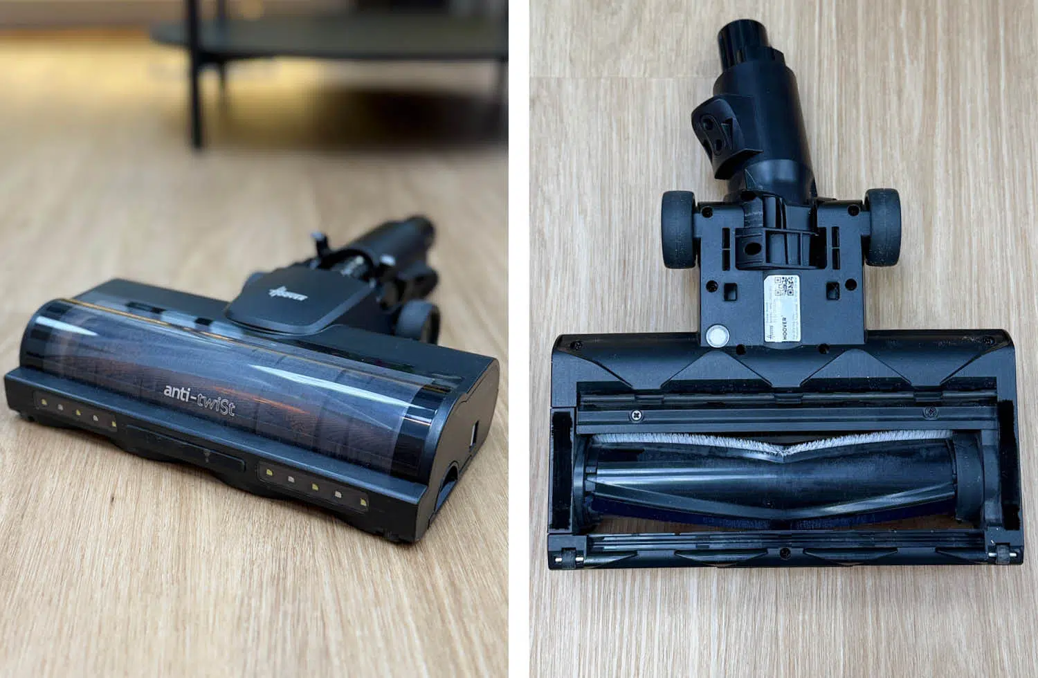 Die mitgelieferte Multibürste des Hoover HF6 Home kombiniert eine motorisierte Bodendüse mit integrierten LED-Lichtern, die dunklere Bereiche entlang von Möbeln oder Sockelleisten besser ausleuchten. Die Bürste ist als Allround-Lösung ausgelegt und soll sowohl auf Hartboden als auch auf kurzflorigen Teppichen für eine solide Aufnahme von Schmutz, Staub und Haaren sorgen.