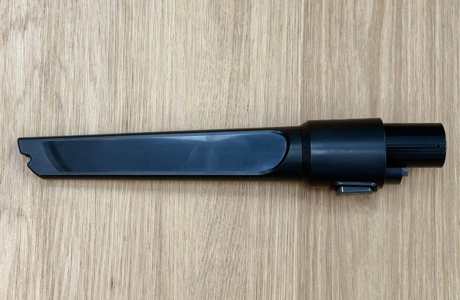 Die Fugendüse ist klassisch gehalten und eignet sich vor allem für schwer erreichbare Bereiche wie Sofaritzen, Ecken, Sockelleisten oder Zwischenräume im Auto. Durch ihre schmale Bauform gelangt sie auch in enge Spalten, in die die normale Bodendüse nicht kommt.