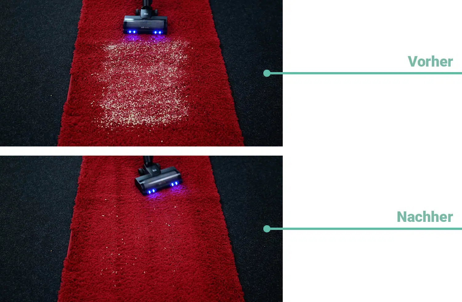 - Unterdurchschnittliche Reinigungsleistung auf Teppichen