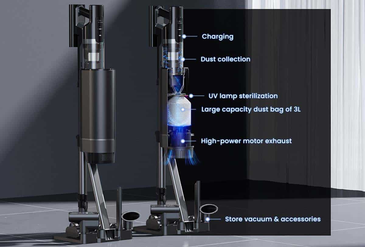 Absaugstationen sind bei Saugrobotern mittlerweile nichts Neues mehr und viele Modelle sind mit einer solchen ausgestattet. Dies sorgt für mehr Komfort und macht die Geräte zudem autonomer, da weniger Wartungsaufwand anfällt. Bei Akku-Staubsaugern ist eine solche Absaugstation bisher eine Seltenheit und bisher haben nur Samsung und LG solche im Portfolio. Mit dem Proscenic DustZero S3 kommt jetzt ein Akkusauger aus dem günstigeren Preissegment und einer solchen Funktion auf den Markt. Viele technische Details sind aktuell noch nicht bekannt, nur die Ankündigung der Kampagne auf Indiegogo mit einigen Bildern kann man der Vorschau entnehmen. Ein Produktvideo auf YouTube gibt es ebenfalls, welches ihr hier im Beitrag ganz oben verlinkt findet. Fest steht, dass der DustZero S3 eine Absaugstation besitzt, welche mit einem drei Liter Staubbeutel ausgestattet ist. Dieser soll für bis zu 30 Tage ausreichen, muss also nur einmal im Monat gewechselt werden.