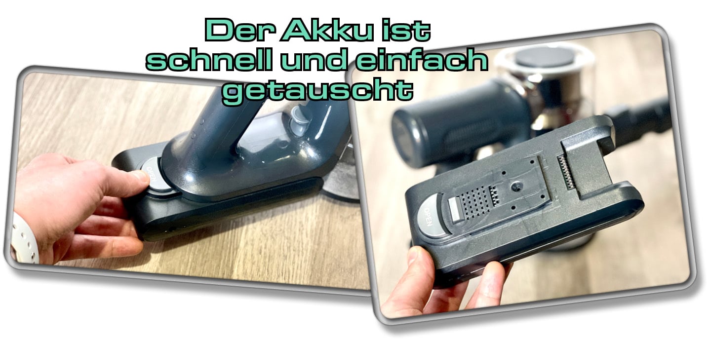 Ebenfalls interessant ist die Tatsache, dass sich der Akku des Akkusaugers entnehmen lässt. So kann man einen weiteren Akku dazukaufen und diesen bei Bedarf austauschen.