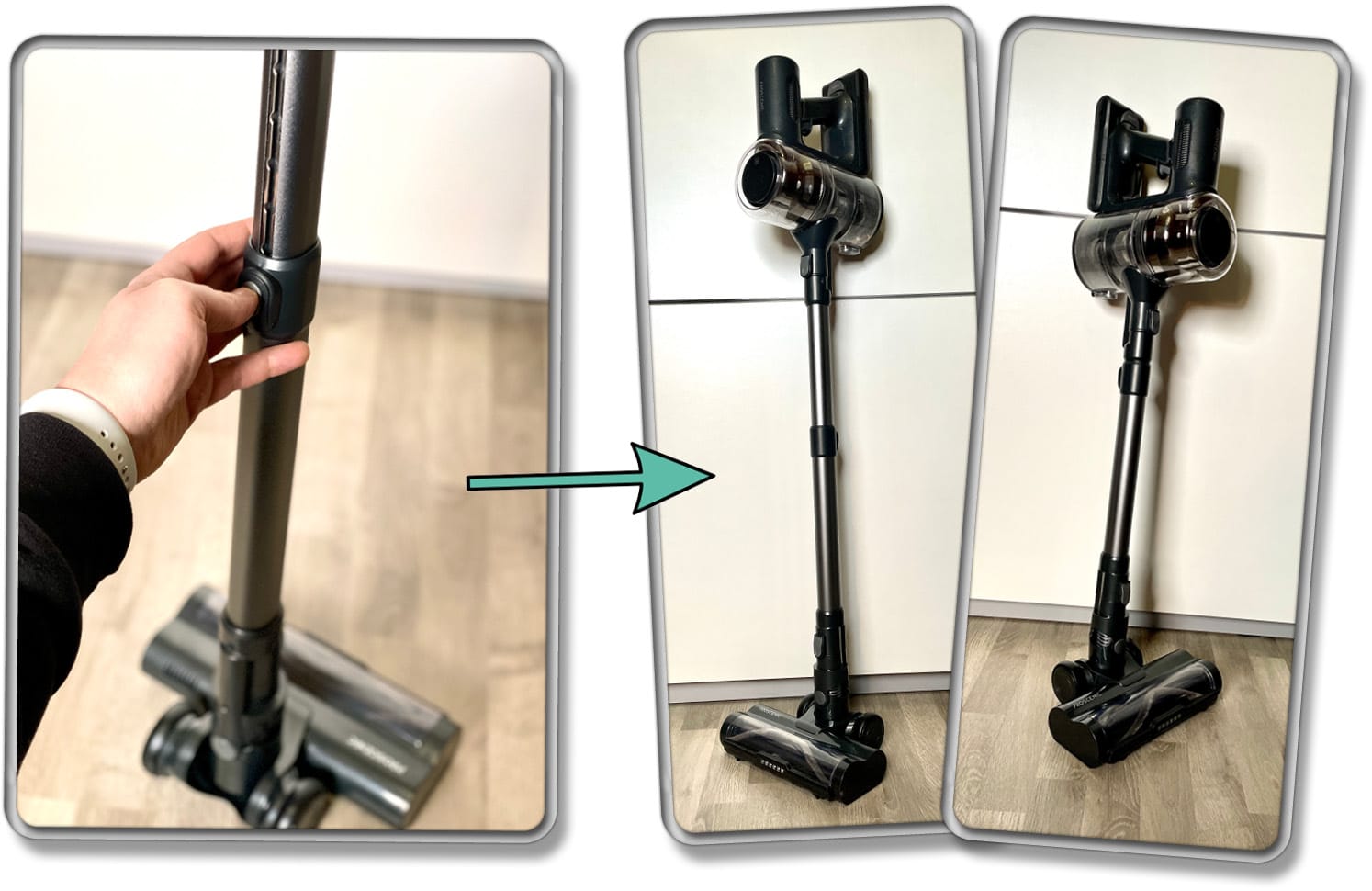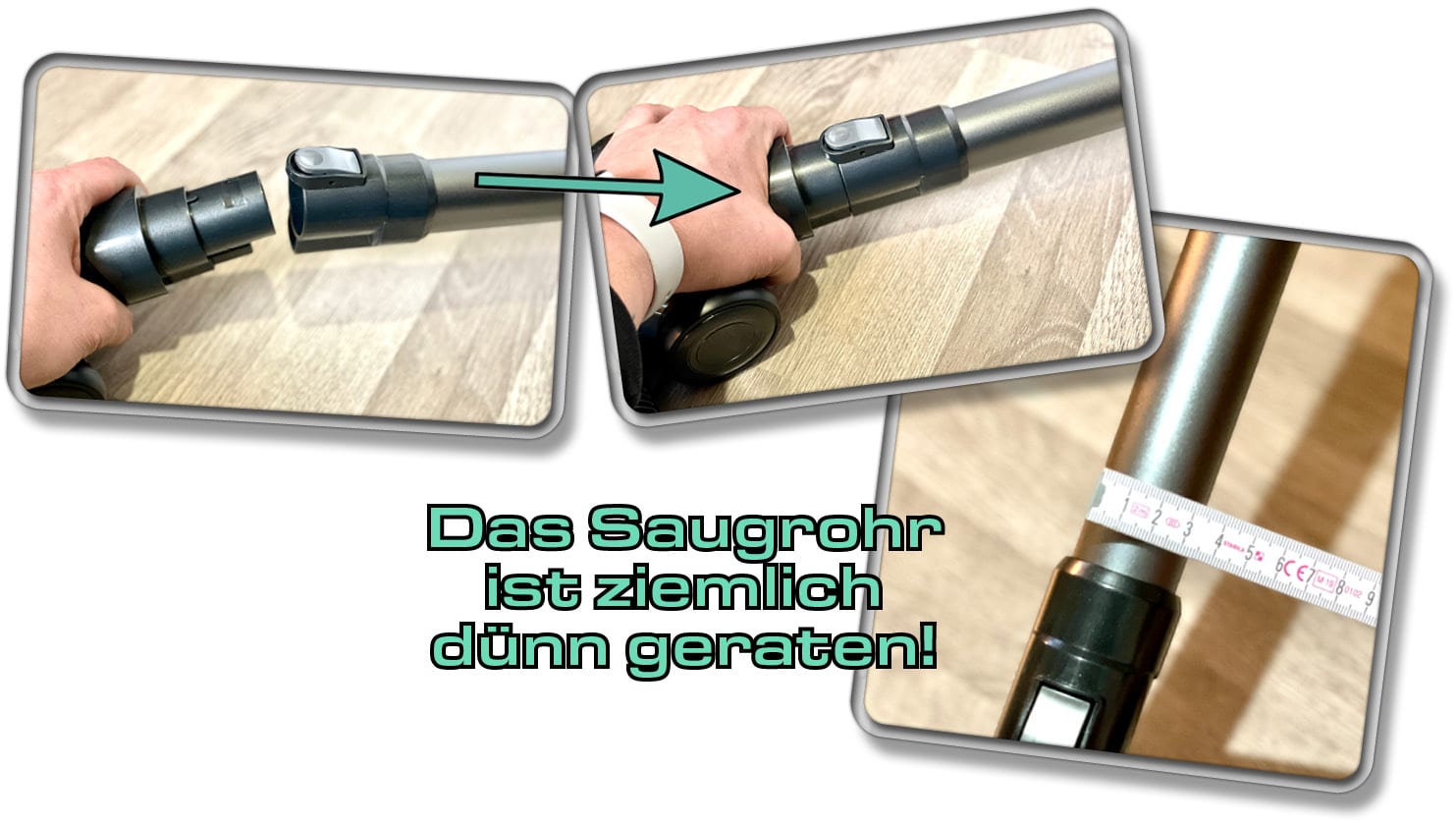 Das Saugrohr ist nicht knickbar, dafür ausziehbar. Wenn du dich auf den Boden begibst, dann kannst du auch komfortabel unter Möbeln reinigen. Dafür jedoch kann das Saugrohr mit anderen Adaptern in eingestellter Länge in unzugängliche Bereiche vordringen.