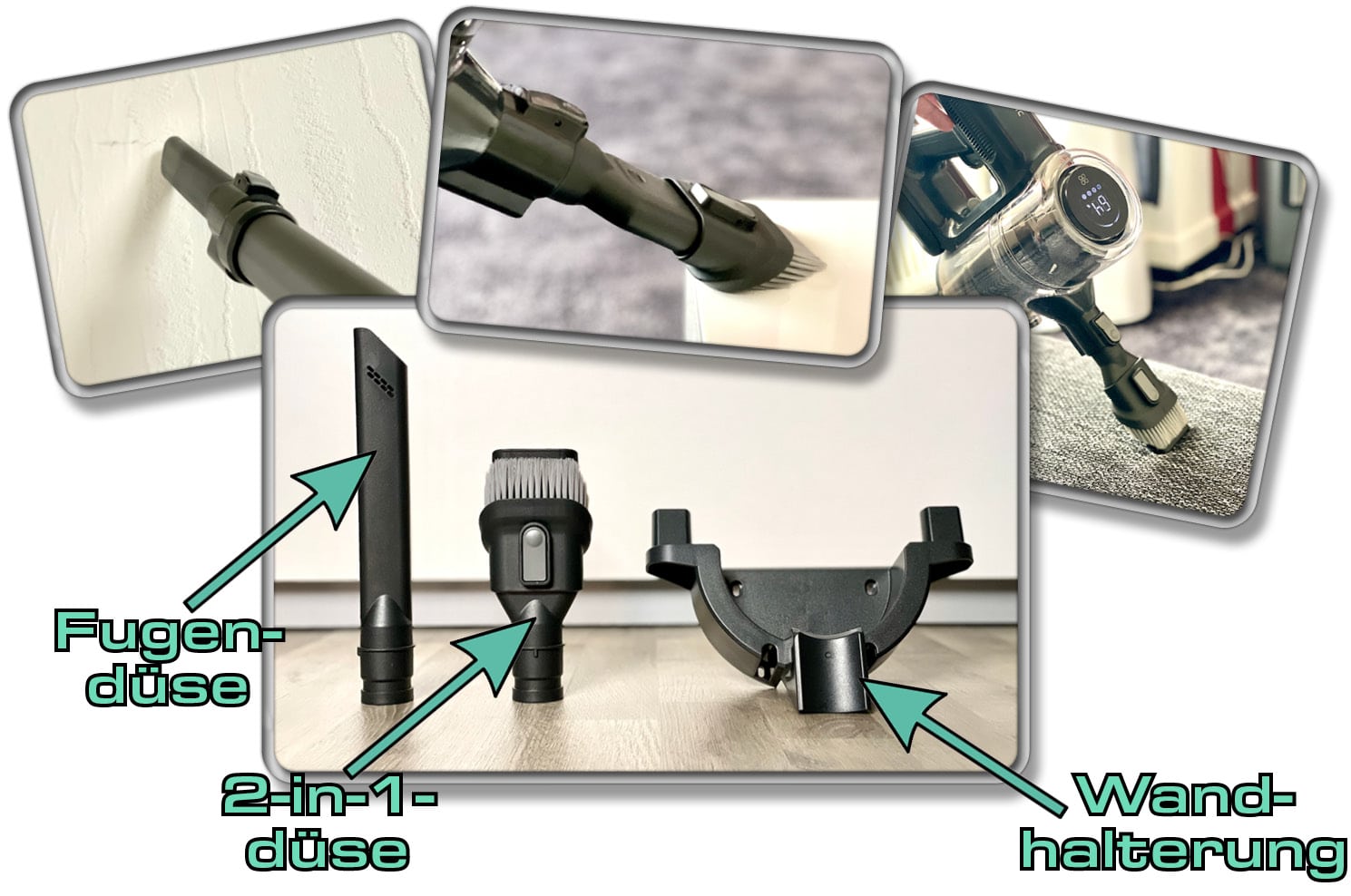 Enthalten im Lieferumfang ist standardmäßig eine nicht ausziehbare und recht einfach verarbeitete Fugendüse und eine 2-in-1-Düse. Durch die Kombination mit dem ausziehbaren Rohr, kann das Zubehör recht flexibel eingesetzt werden.