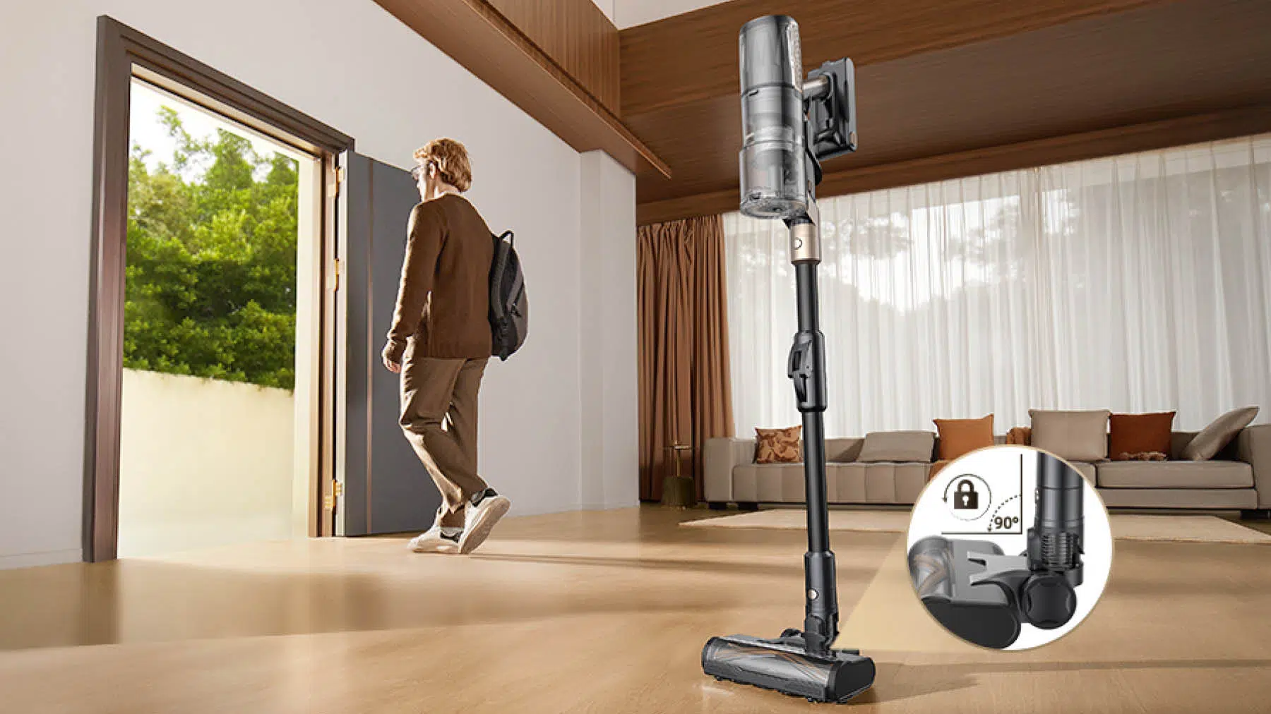 Highlight des Akkusaugers dürften sicherlich die flexiblen Nutzungsmöglichkeiten sein. Das knickbare Rohr erleichtert das Saugen unter Möbeln ungemein. Das LED-Licht an der Hauptbürste, die speziell gegen Haarverhedderungen konzipiert wurde, bringt Licht ins Dunkel. Praktisch ist zudem die Freistehfunktion, mit der der Akkusauger problemlos mitten im Raum stehen bleibt.