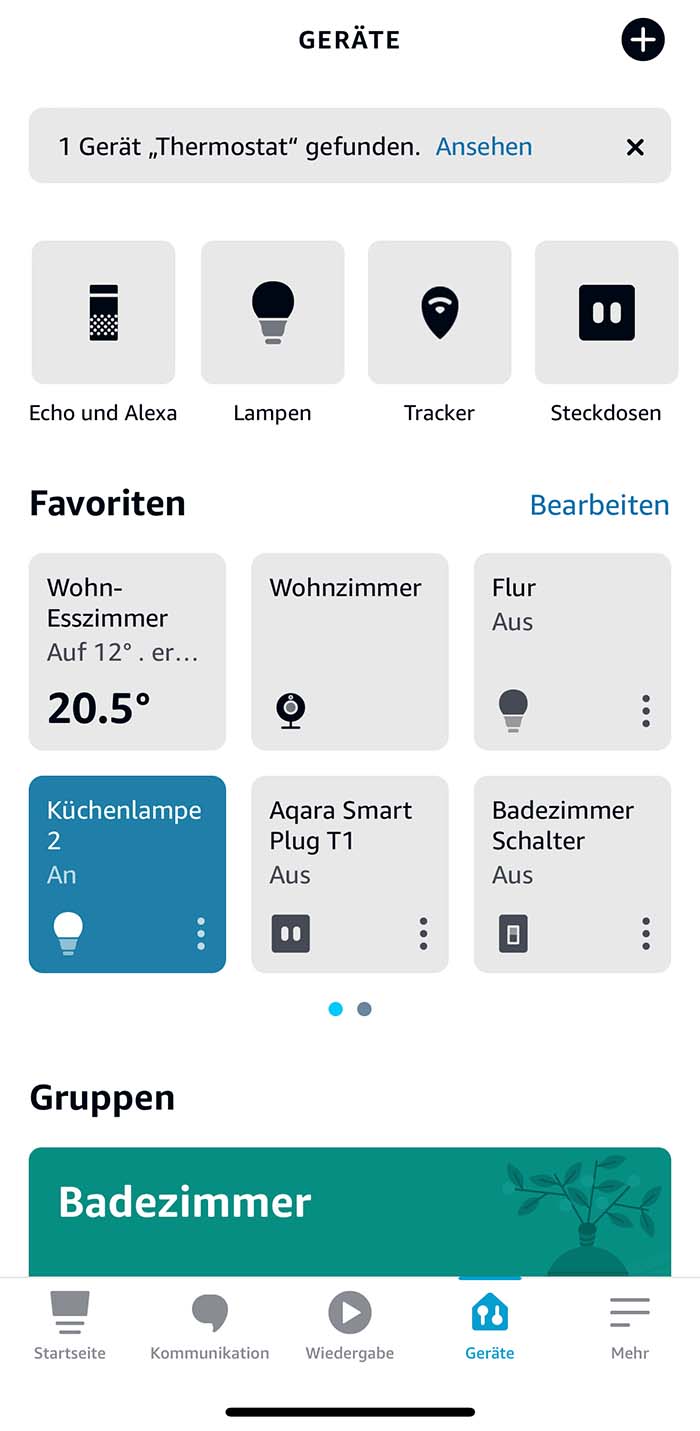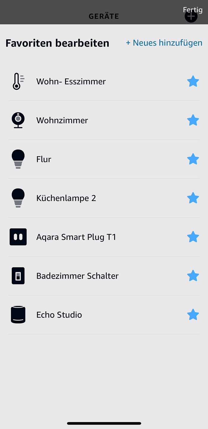 Die Favoriten stehen in der Alexa-App unter dem Reiter „Geräte“ zur Verfügung und sind anfangs bereits vorausgewählt. Man kann sie allerdings bearbeiten und so die Geräte, welche man am meisten nutzt, dort ablegen.