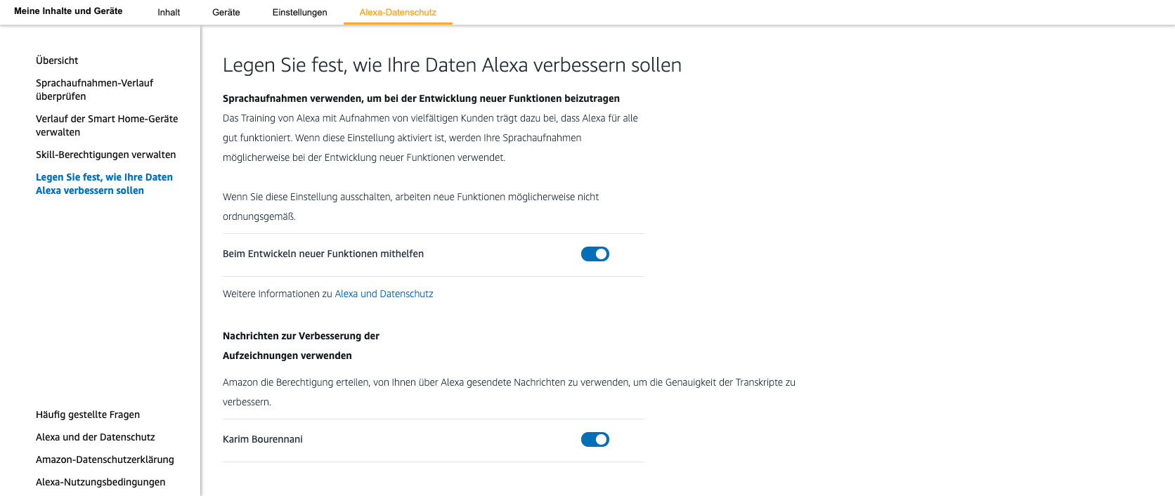 - Den Datenschutz und eigene Daten verwalten – Verbesserung von Alexa zulassen/blockieren