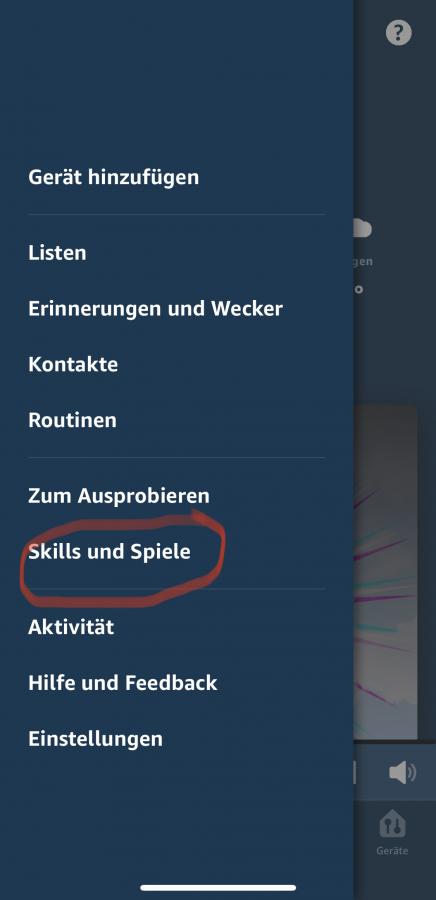 Auf das Burger-Menü klicken und danach auf „Skills und Spiele„