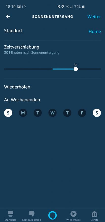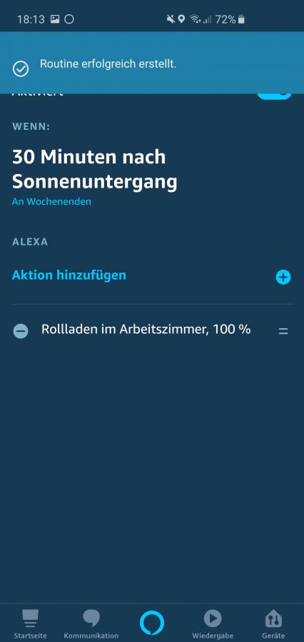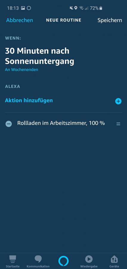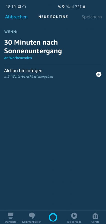 Das Schöne an solchen Routinen ist nun natürlich die Tatsache, das im Nachhinein kein eigenes Zutun mehr nötig ist und man auch keine aktiven Sprachbefehle mehr benötigt, um die Routine starten zu lassen! Das passiert dann vollautomatisch mit dem Sonnenaufgang / Sonnenuntergang.