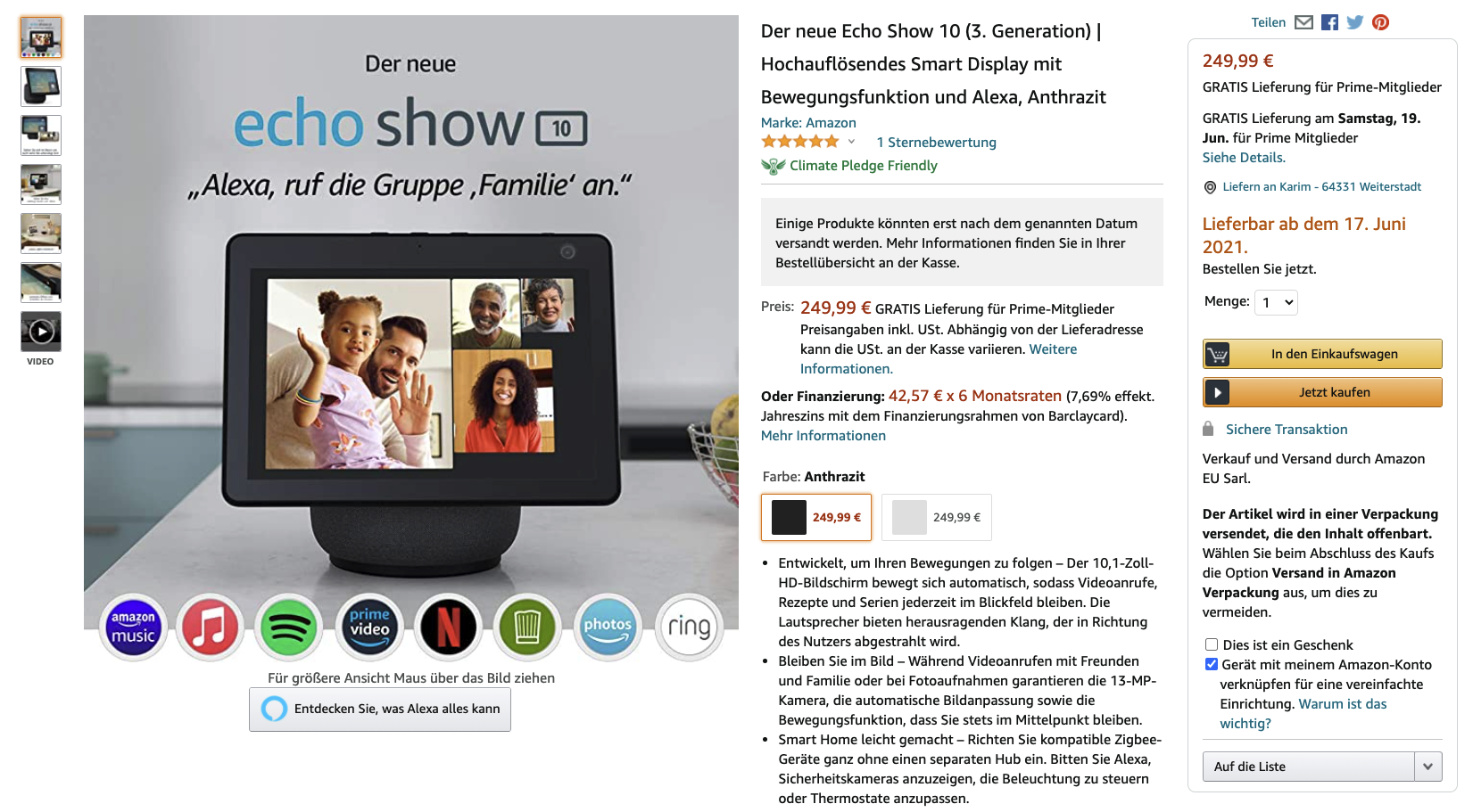 Echo Show 10 wird frühestens ab 17. Juni geliefert!
