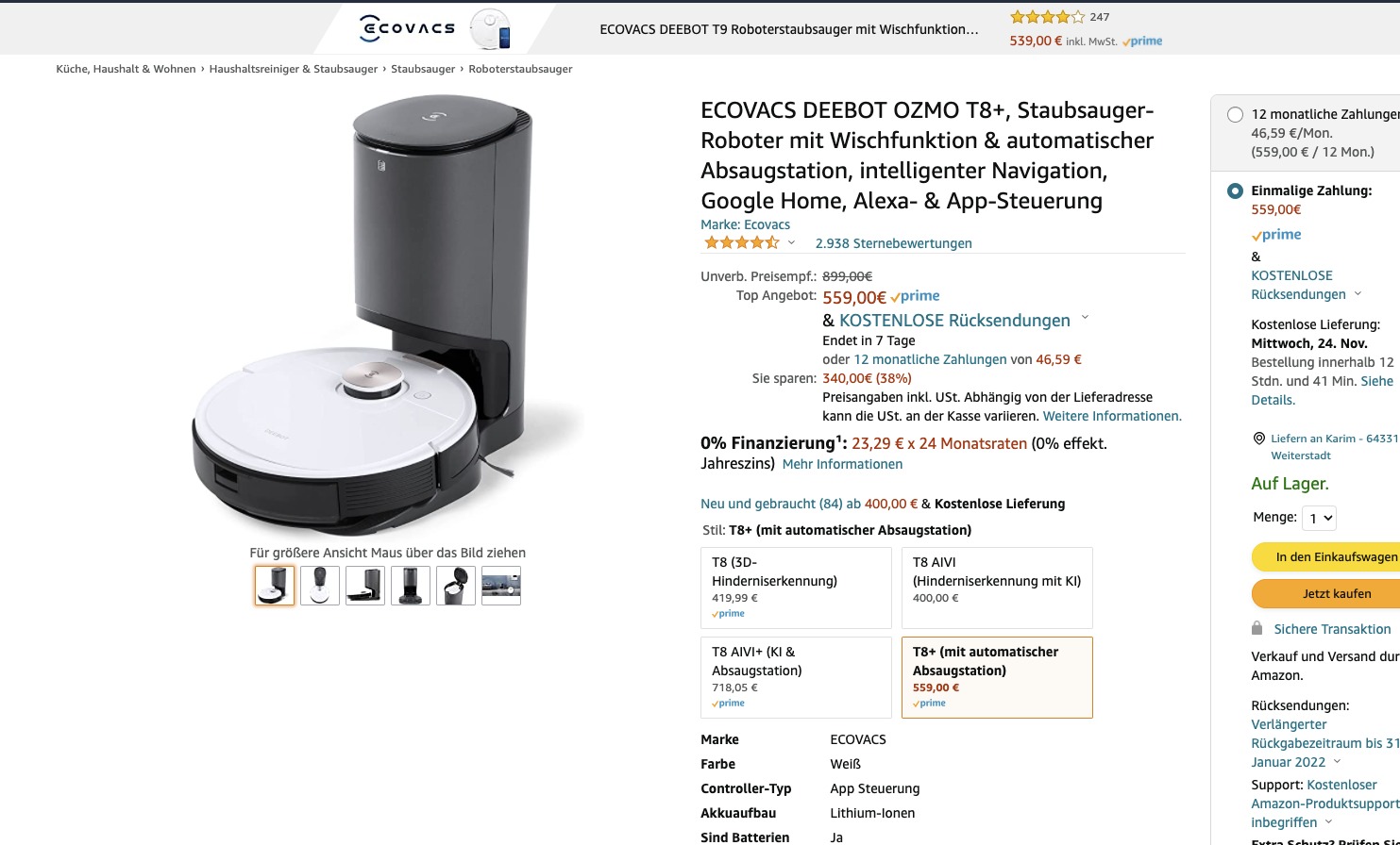 Skizzieren wir hier mal ein Beispiel. Du bist auf der Suche nach einem Produkt. In unserem Fall einem Saugroboter. Der Preis liegt meist so bei um die 550€. Auf einmal findest du aber ein Angebot bei Amazon, dass mit einem Preis von nur 400€ ausgezeichnet ist. Das klingt natürlich extrem verlockend und und ködert dich zum Kauf.