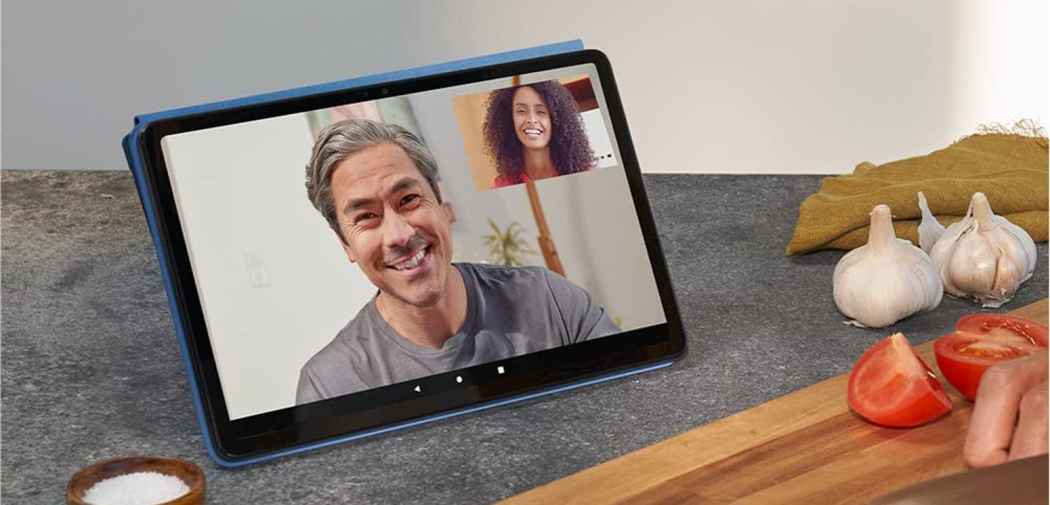 Es wiegt weniger als 500 g, hat schmale Displayränder und hat verstärktes Glas mit an Bord, das dreimal robuster sein soll, als das des iPads. Für die Sicherheit ist ein Fingerabdrucksensor mit an Bord und für schöne Fotos sorgt eine 8-Musikpark-Frontkamera und Rück-Kamera. Alexa darf natürlich nicht fehlen und ist auch dabei.