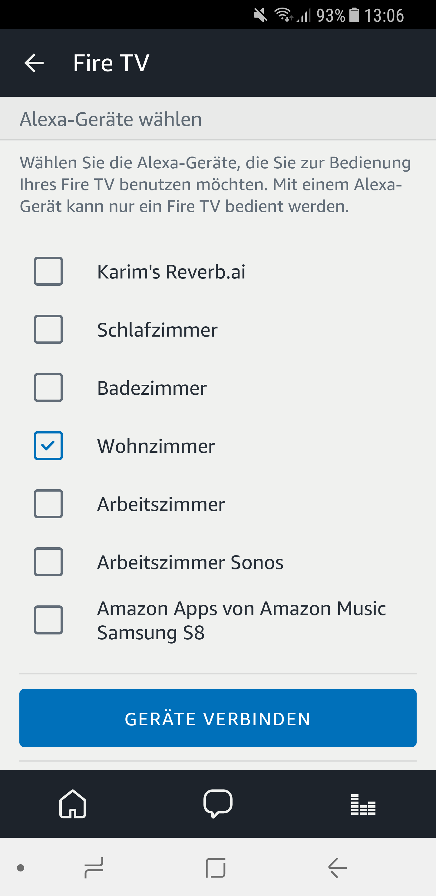 - Im nächsten Schritt wählt ihr noch den Echo aus, über den die Sprachsteuerung laufen soll. Es bietet sich natürlich der nächstgelegene an. Verbindet dann die Geräte miteinander.