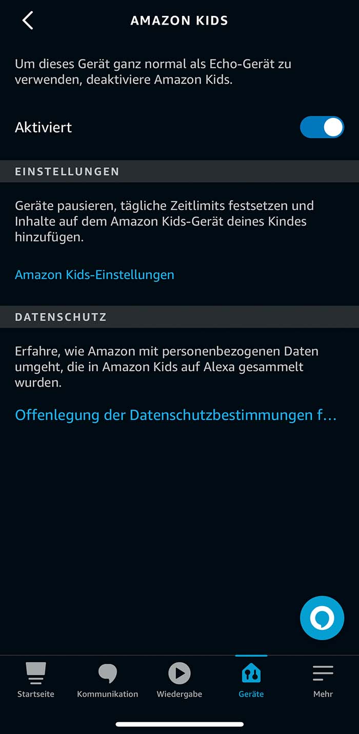 In den Einstellungen eines Echo könnt ihr Amazon Kids mit einem Schieberegler aktivieren oder deaktivieren. Für die Nutzung könnt ihr auch bereits bestehende Amazon Kids Konten verwenden, falls ihr diese zum Beispiel auf einem Fire Tablet genutzt habt. Nach der Einrichtung könnt ihr festlegen, welche Inhalte auf dem Echo wiedergegeben werden können und zum Beispiel auch Musik filtern, welche nicht für die Ohren von Kindern geeignet ist. Auch die Sprachantworten werden durch Amazon Kids an Kinder angepasst und es lassen sich Zeitpläne für die Nutzung einrichten.