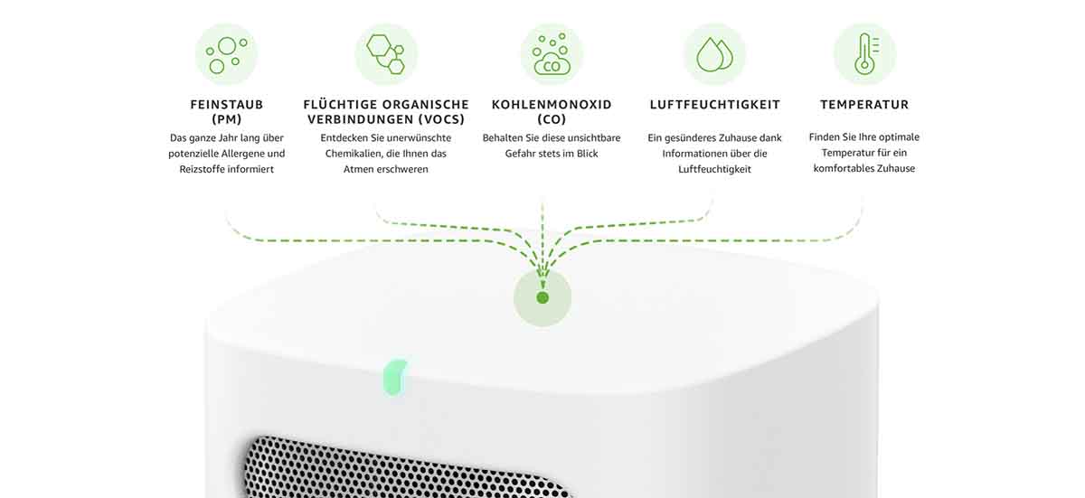 Amazon hat überraschen ein neues Gerät vorgestellt. Der Smart Air Quality Monitor ist ein smarter Luftqualitätssensor, welcher die fünf wichtigsten Werte zur Qualität der Raumluft erfassen kann. Er misst Feinstaub, VOCs, Kohlenmonoxid, die Luftfeuchtigkeit und die Temperatur.