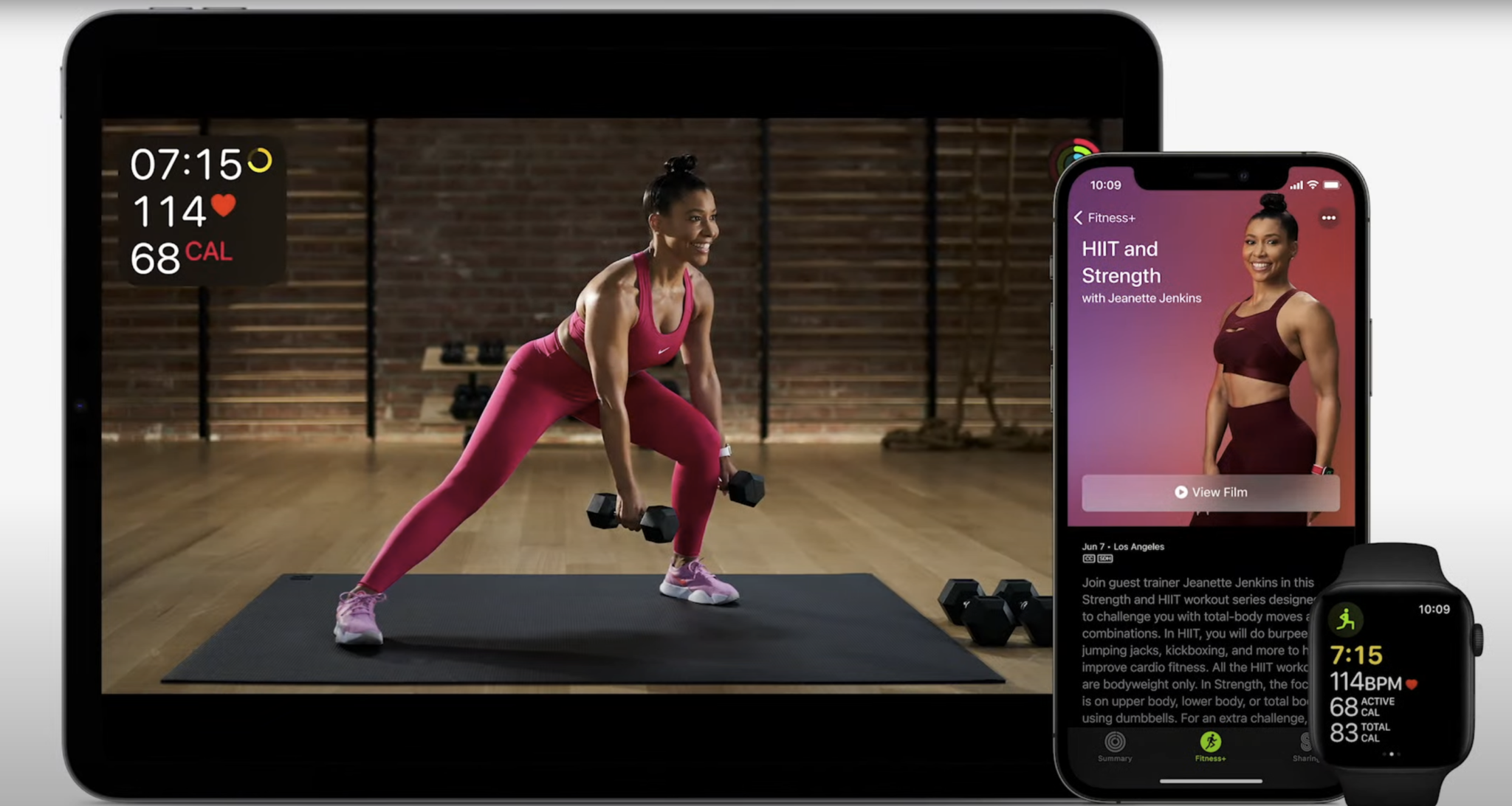 Apple wirbt mit 11 Trainingsarten von HIIT und Pilates über Kraft bis Yoga und Gehen mit Trainingsdaten – wie beispielsweise die Herzfrequenz – in Echtzeit auf deinem Bildschirm. Jede Woche sollen neue Workouts dazu kommen und zwischen 5 und 45 Minuten Sportspaß liefern.