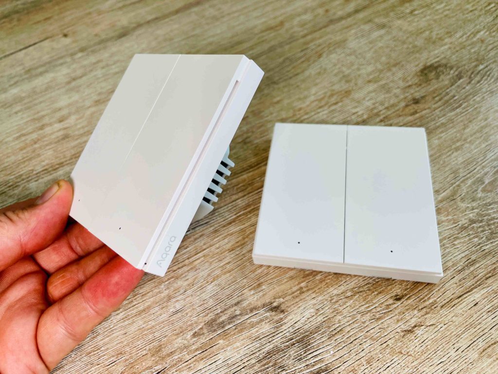 Zur Verfügung steht ein Schalter mit Doppelwippe, welcher fest verdrahtet werden muss. Dabei gibt es eine Variante mit und eine ohne Neutralleiter. Weiterhin gibt es auch eine kabellose Version, die vollkommen flexibel einsetzbar ist und auch per Kleben befestigt werden kann. Alle Varianten laufen mit ZigBee 3.0 und müssen an einen Aqara Hub angebunden werden. Die Integration in HomeKit ist, wie von Aqara gewohnt, ebenfalls möglich.