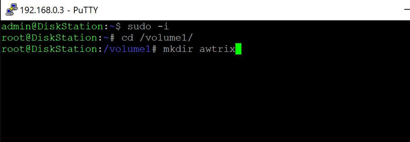 mkdir awtrix (damit erstellst du ein neues Verzeichnis)