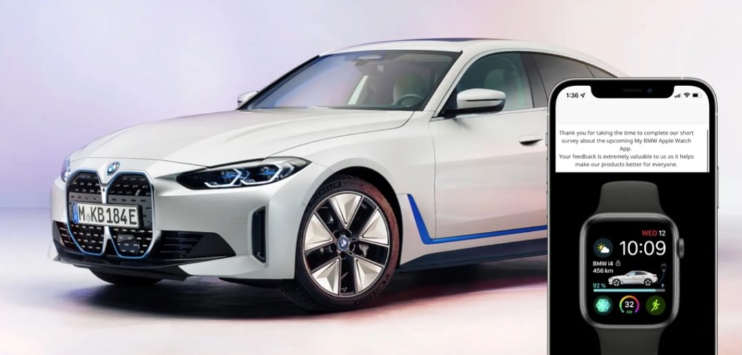 Dafür befragt BMW Apple Watch Nutzer, vor der Markteinführung des vollelektronischen BMW i4 im Herbst 2021, welche Funktionen sie nutzen und welche ihnen wichtig sind. Die App soll unter anderem Fahrzeuginformationen anzeigen, Türen ver- und entriegeln, das Klima im Auto steuern, Kameras anzeigen und mehr.