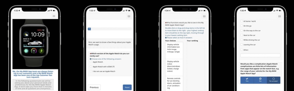 Vielen Dank, dass Sie sich die Zeit genommen haben, an unserer kurzen Umfrage zur kommenden My BMW Apple Watch App teilzunehmen. Ihr Feedback ist für uns sehr wertvoll, da es uns hilft, die My BMW Apple Watch App nach Ihren persönlichen Bedürfnissen und Vorlieben zu gestalten.