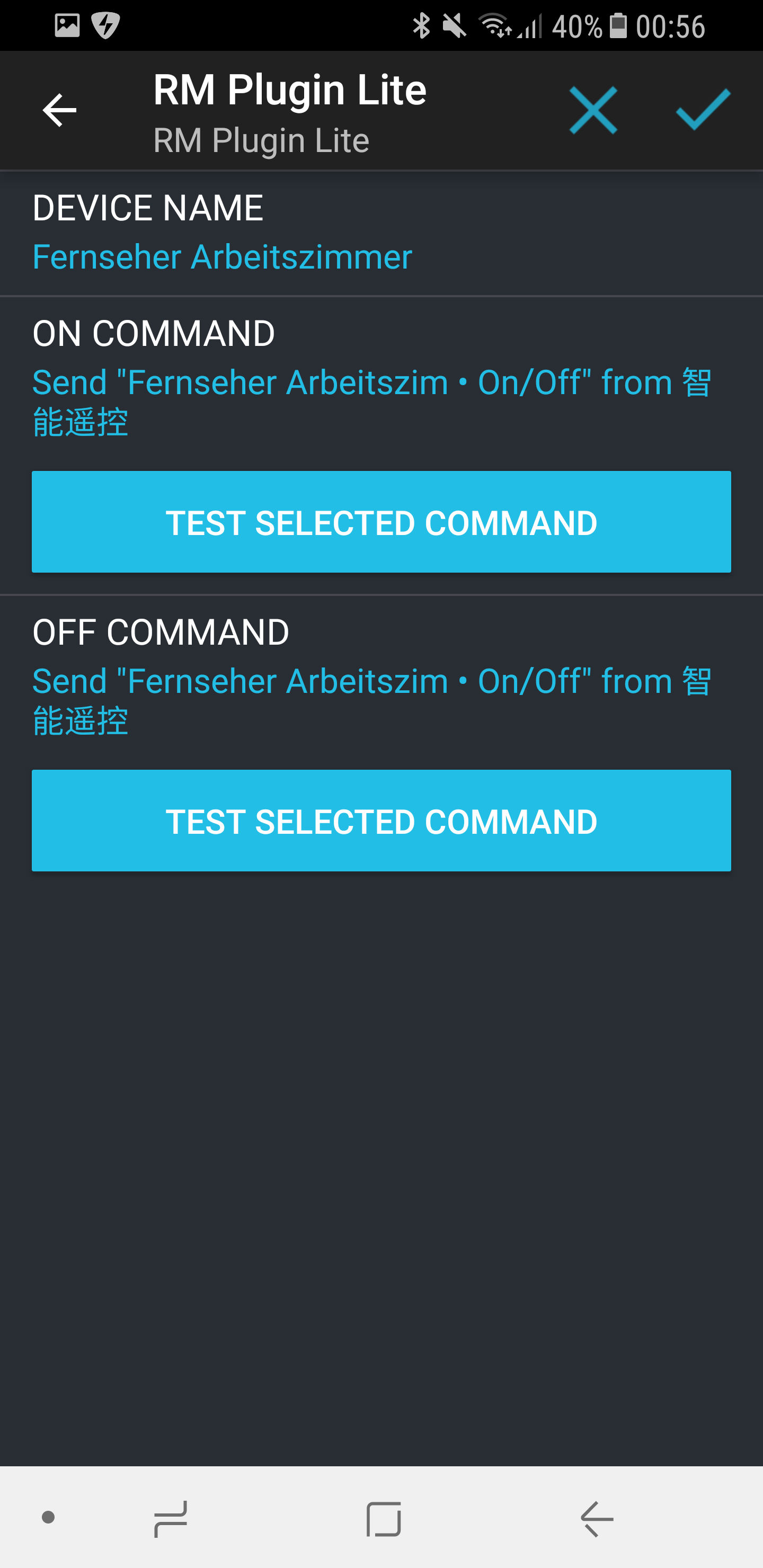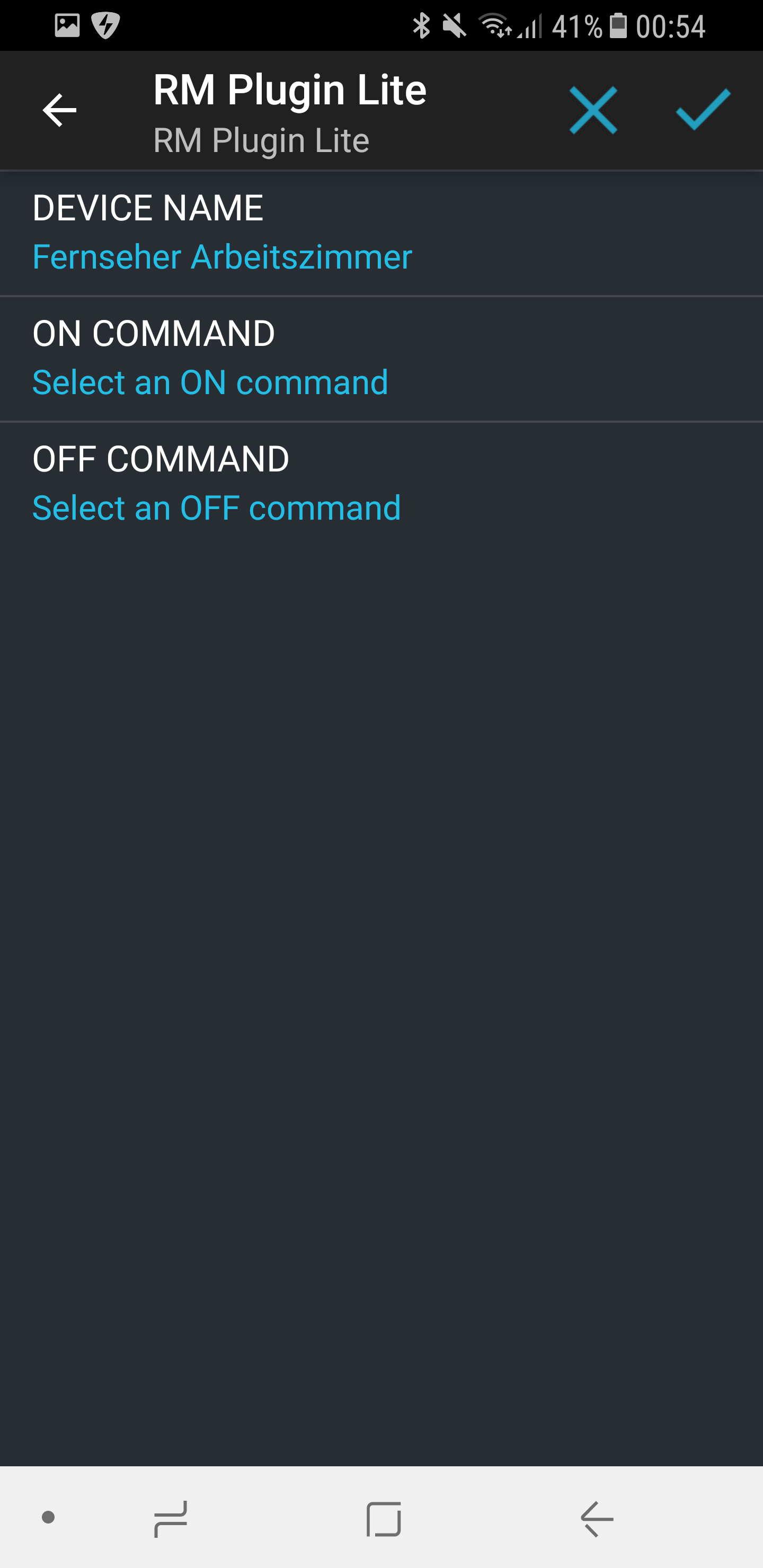 - Wiederhohlt die Schritte auch für den Off-Befehl und bestätigt wieder mit mit dem blauen Haken.