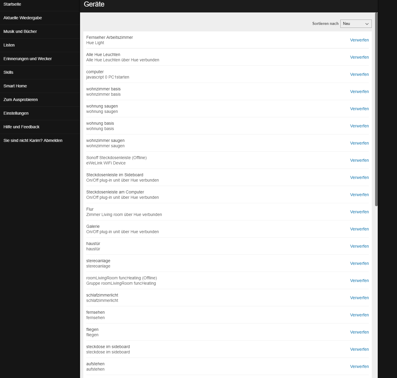 - Wählt nun den Punkt „Alexa Device List“ aus.