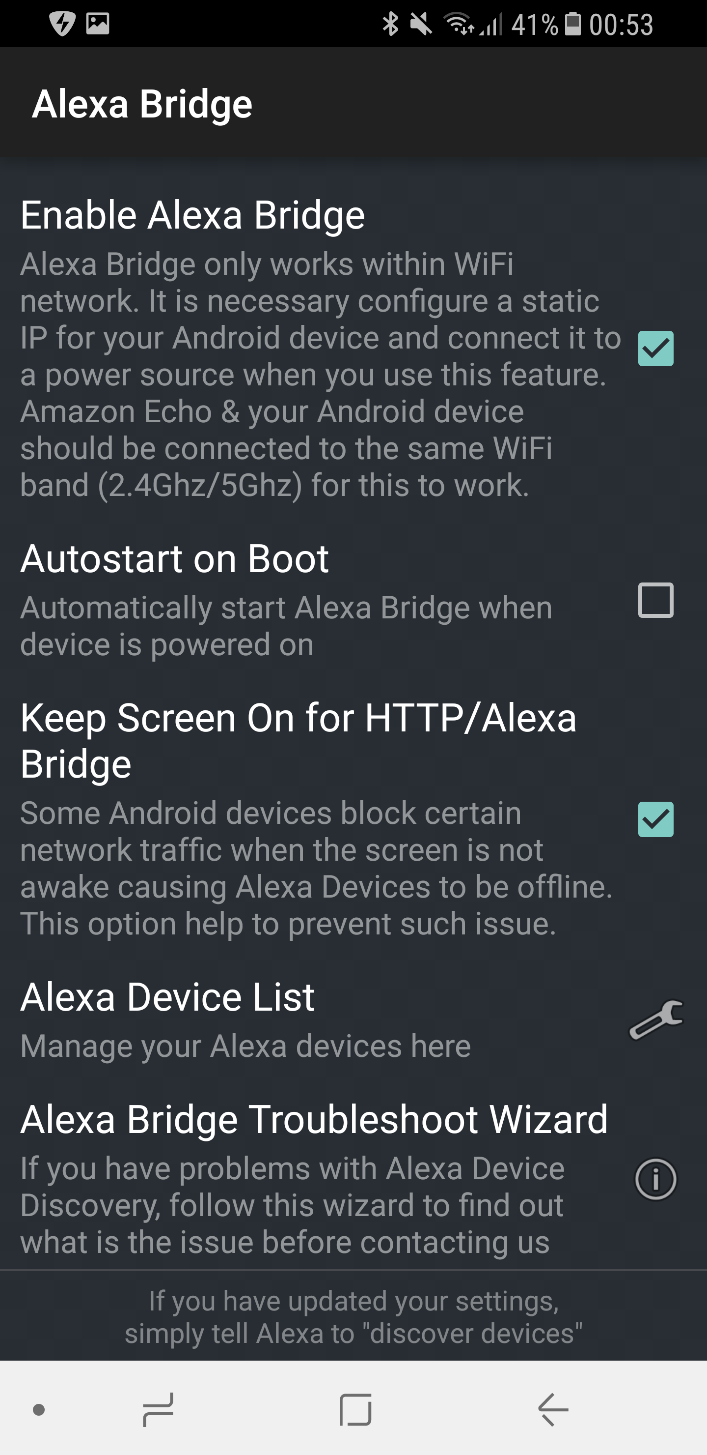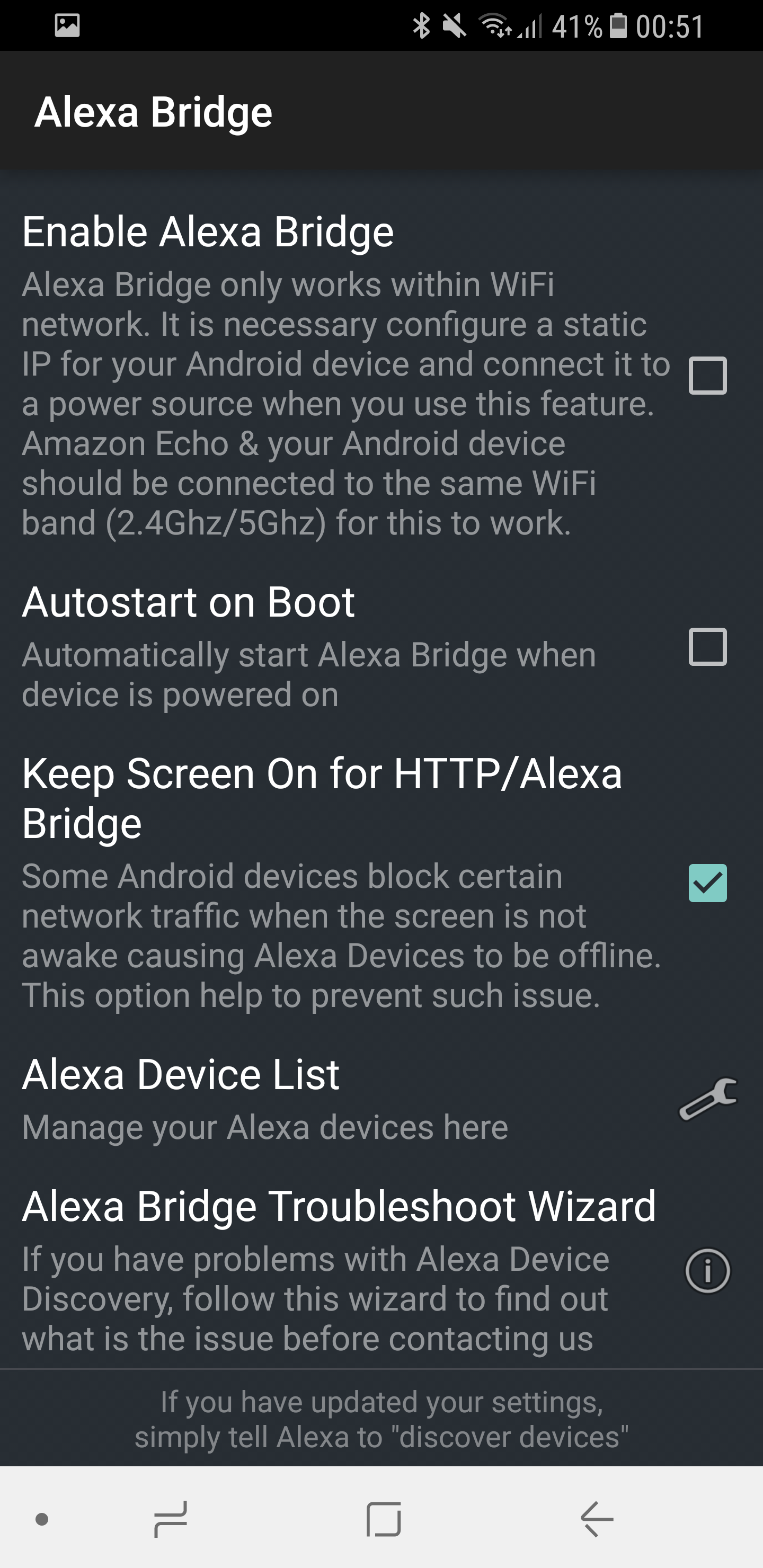 - Schaltet diesen Punkt an, indem ihr auf „Enable Alexa Bridge“ klickt.