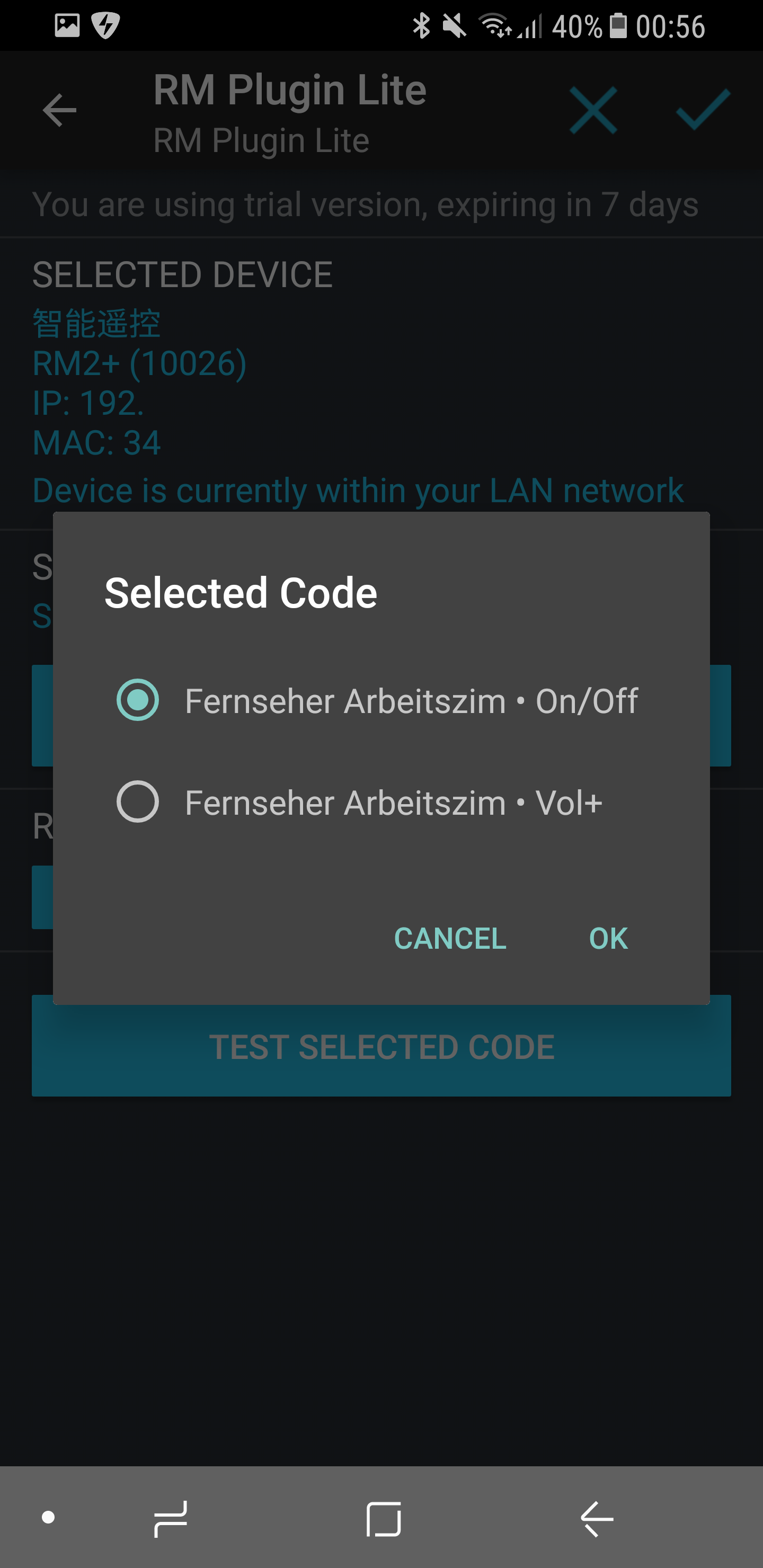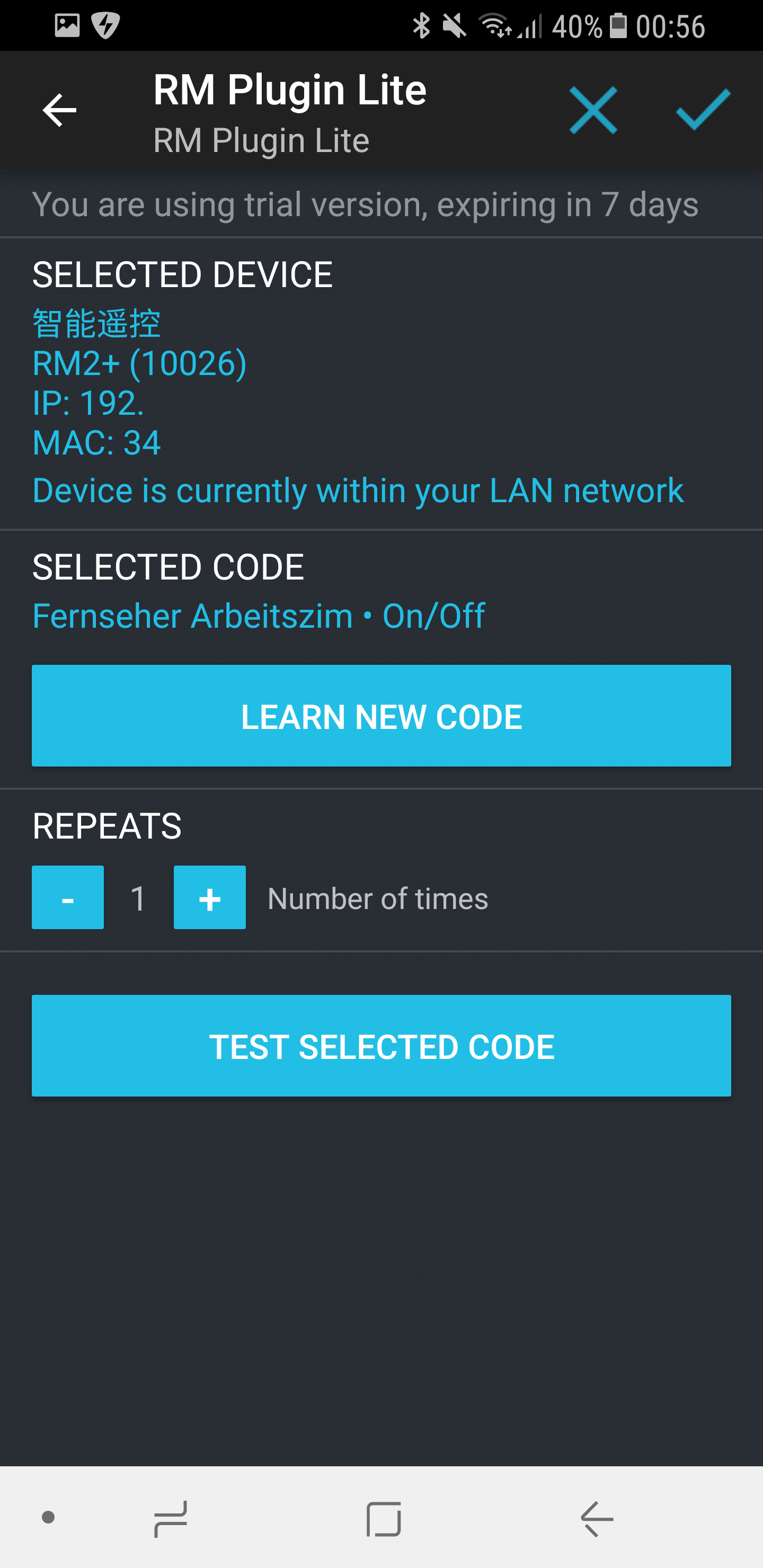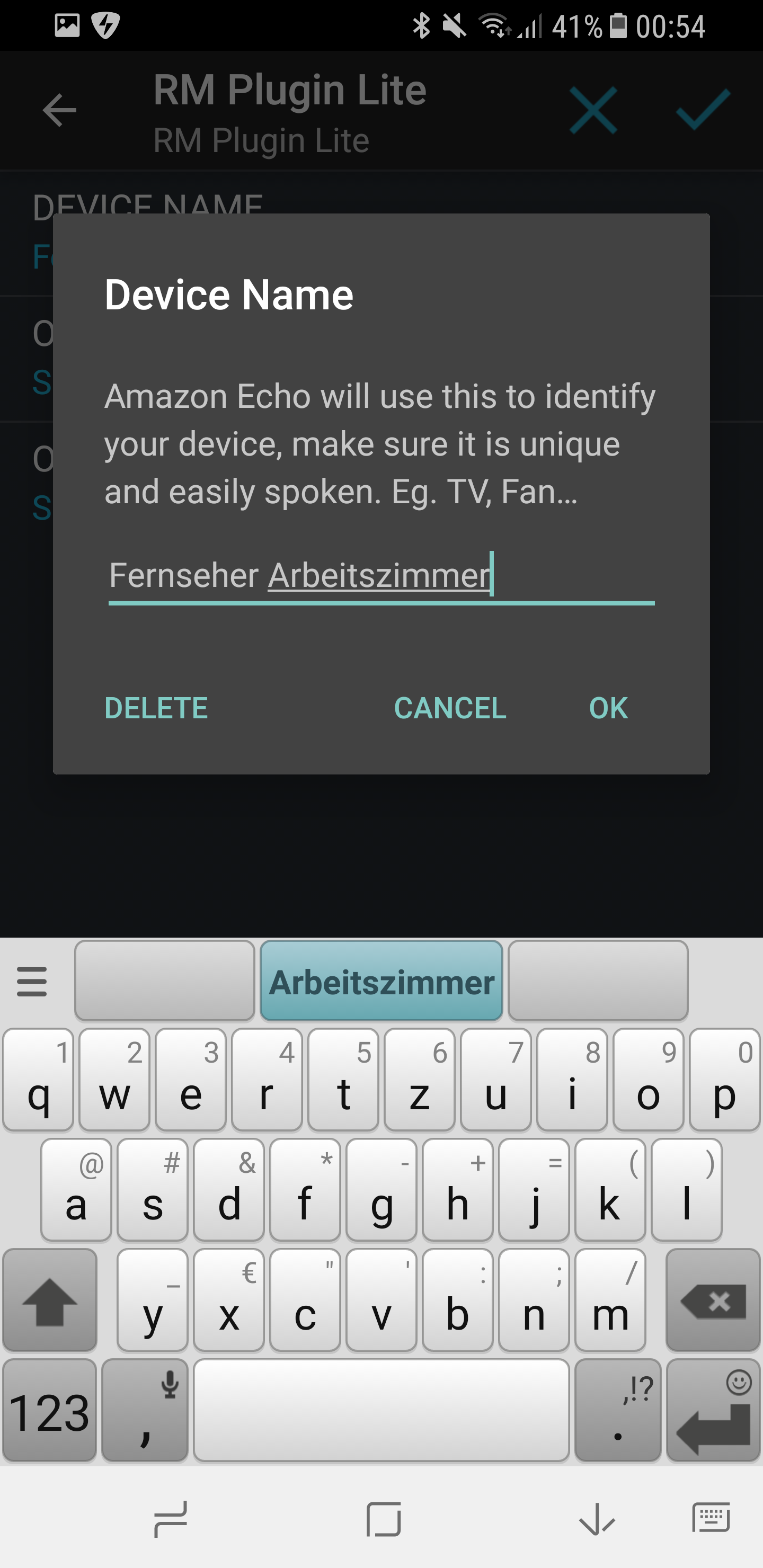 In der folgenden Galerie zeige ich euch die einzelnen Schritte, die ihr in der RM Plugin App vornehmen müsst, um hinterher den Broadlink per Alexa steuern zu können. Lasst euch nicht irritieren. Das Beispiel, dass ich hier und im letzten Beitrag verwendet habe, unterscheidet sich von dem obigen Video. In dem Video schalte ich meinen AV Receiver ein, hier in diesem Beispiel geht es aber um meinen TV.