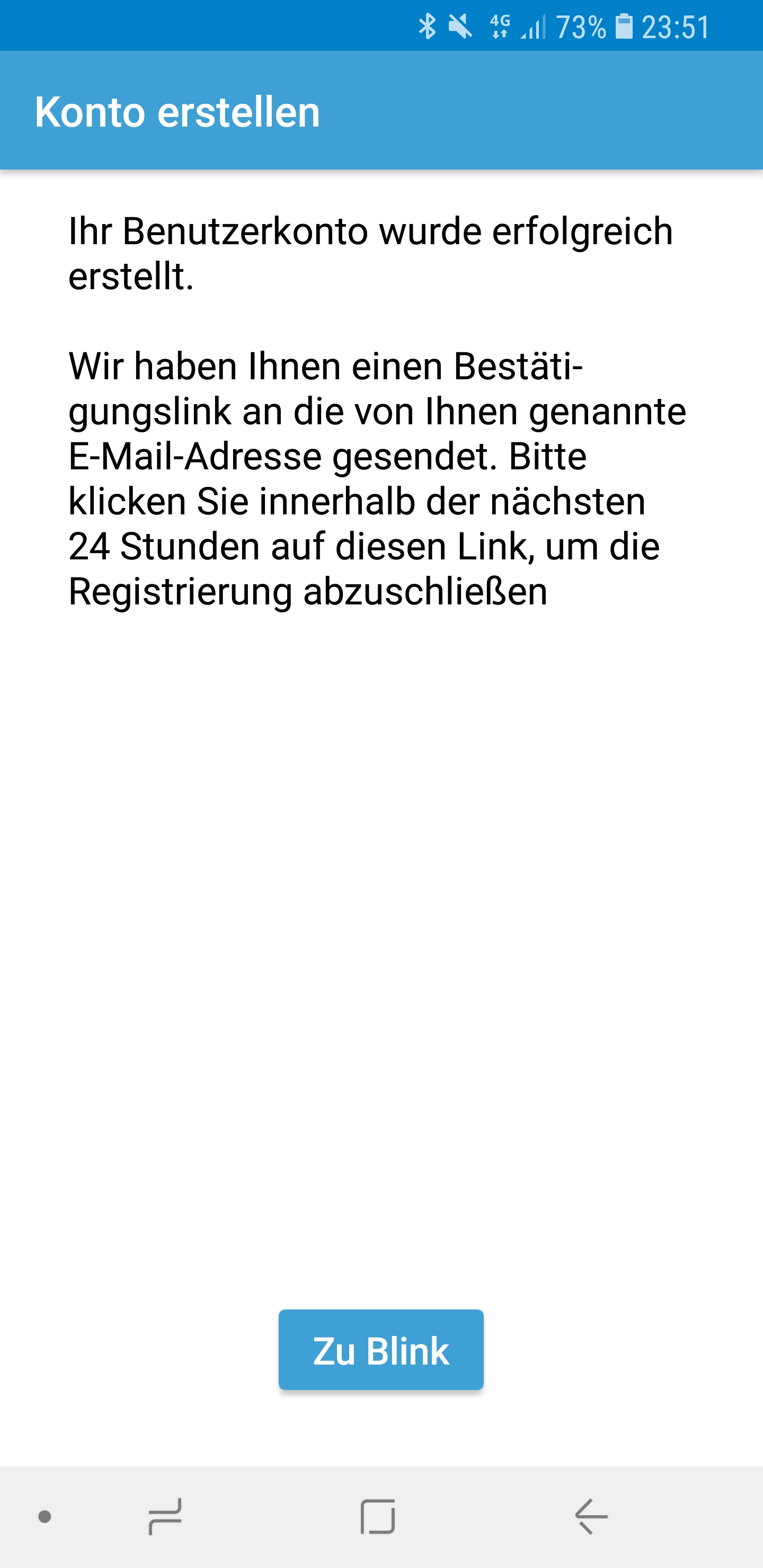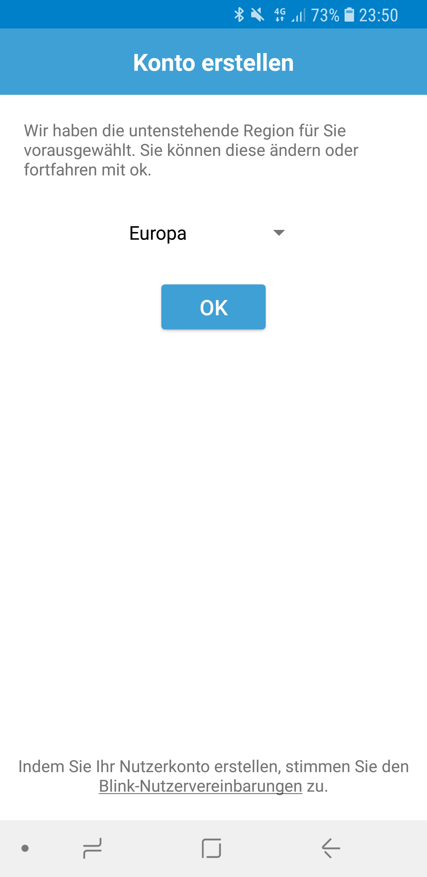 Nun können wir die Blink Home Monitor App starten und mit der Einrichtung Installation beginnen. Zu Beginn muss aber erst ein Account erstellt werden.