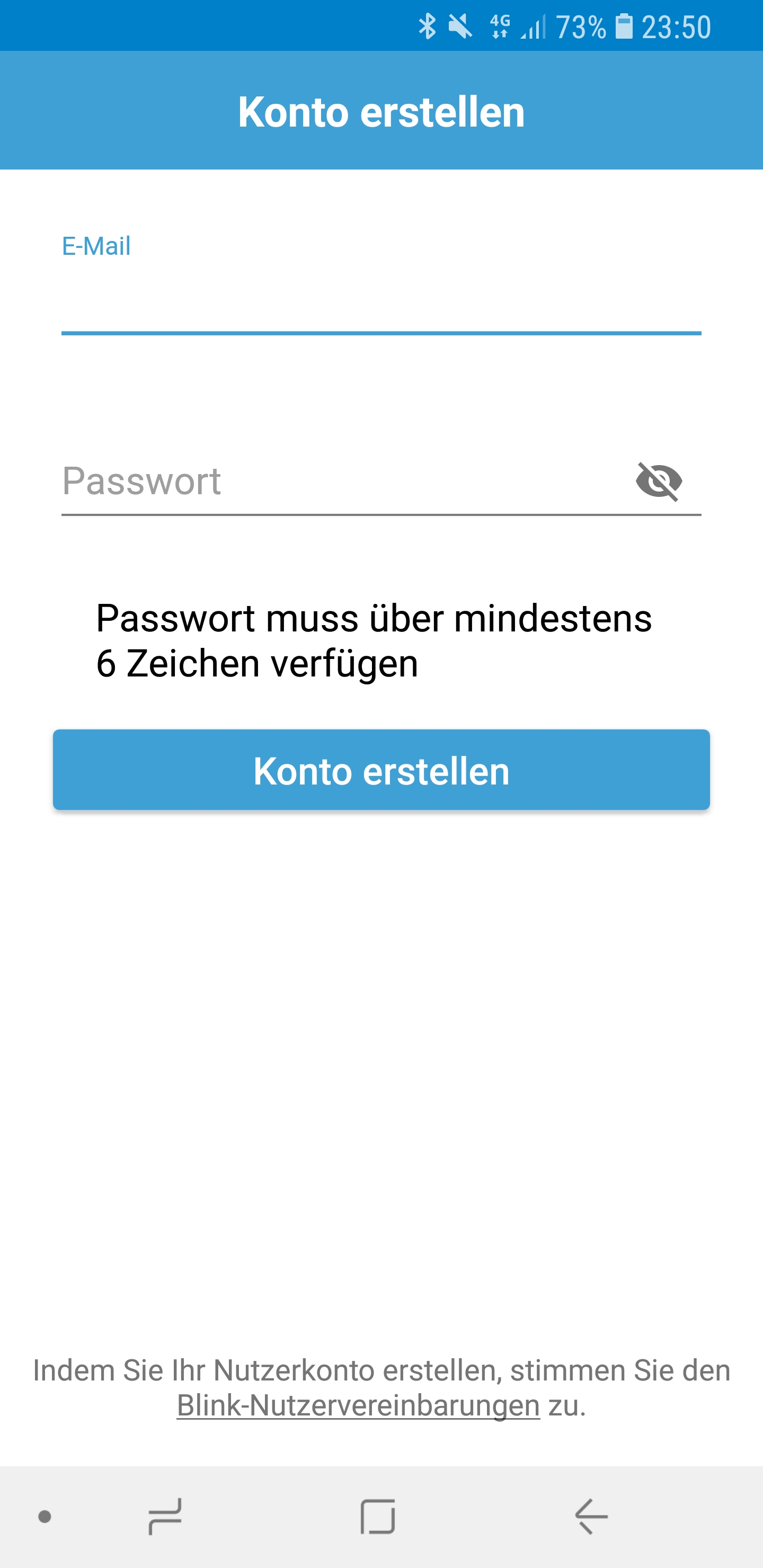 Beginnen wir nun mit der Einrichtung in der Blink Home App. Diese solltet ihr nun installieren und im Anschluss starten. Ihr werden direkt am Anfang nach euren Account Daten gefragt, solltet ihr also wie ich, noch keinen haben, richten wir erstmal einen ein.