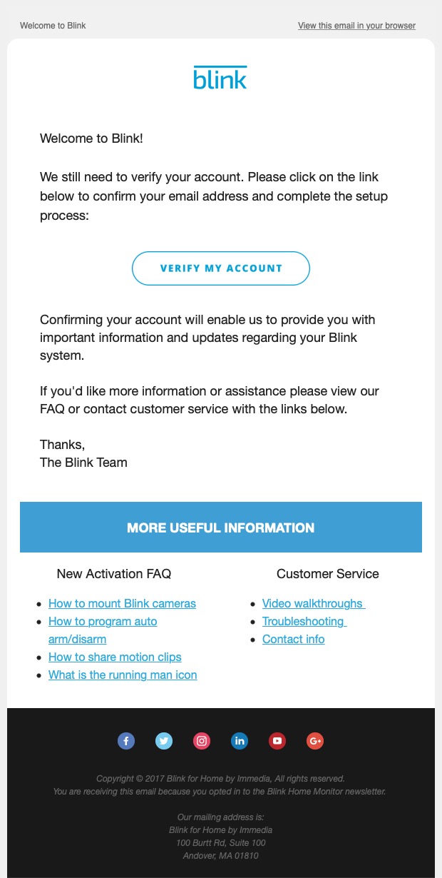 Ihr werdet dann nach einer eMail und einem Passwort gefragt. Gebt beides ein und erstellt euch einen Account. Direkt im Anschluss bekommt ihr eine Mail zugeschickt, in der ihr euren Account noch bestätigen müsst. Nun kann es mit der Einrichtung der Kamera bzw. des Gateway weiter gehen.Blink Sync Modul / Gateway einrichten, installieren & hinzufügen
