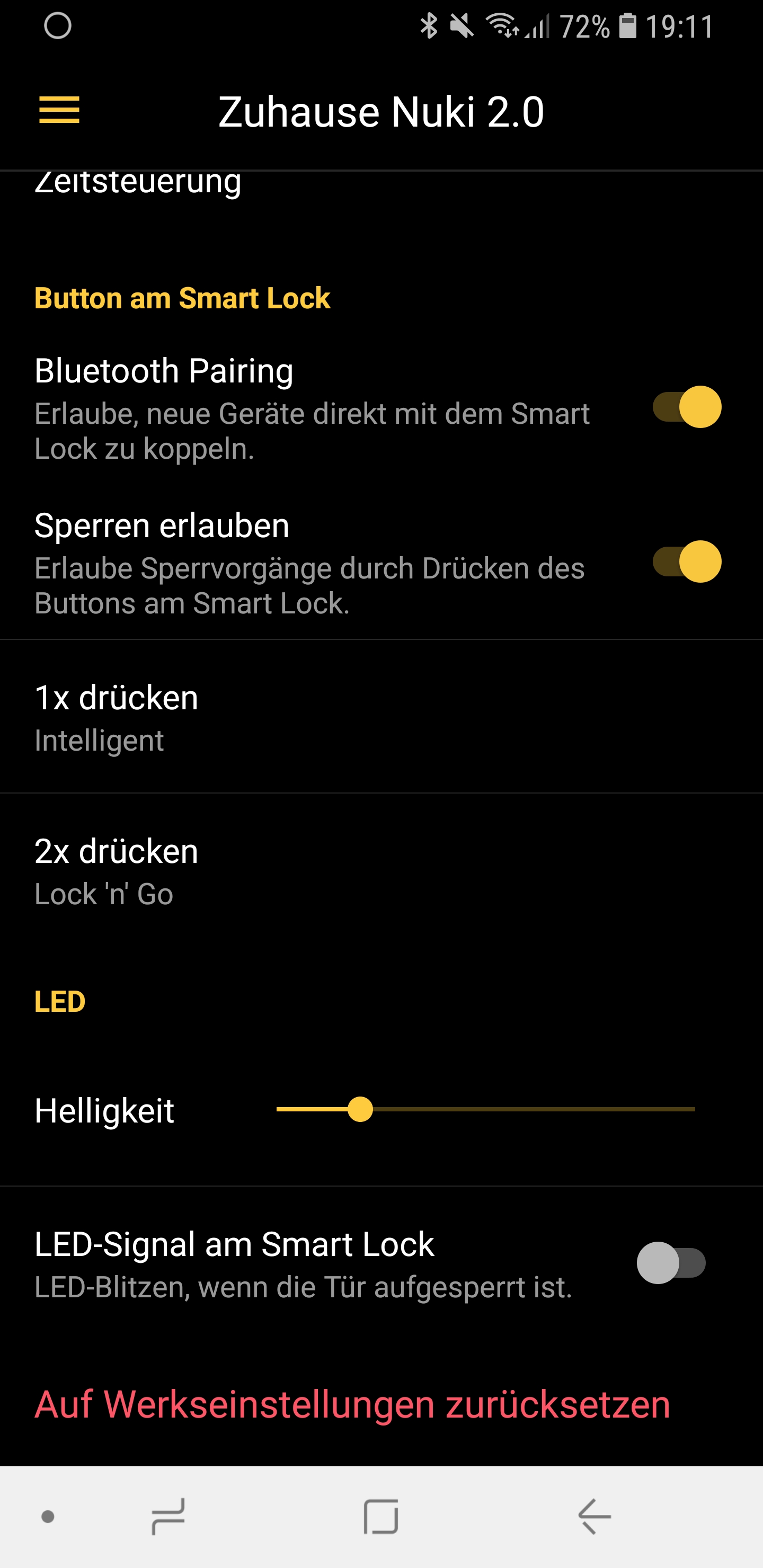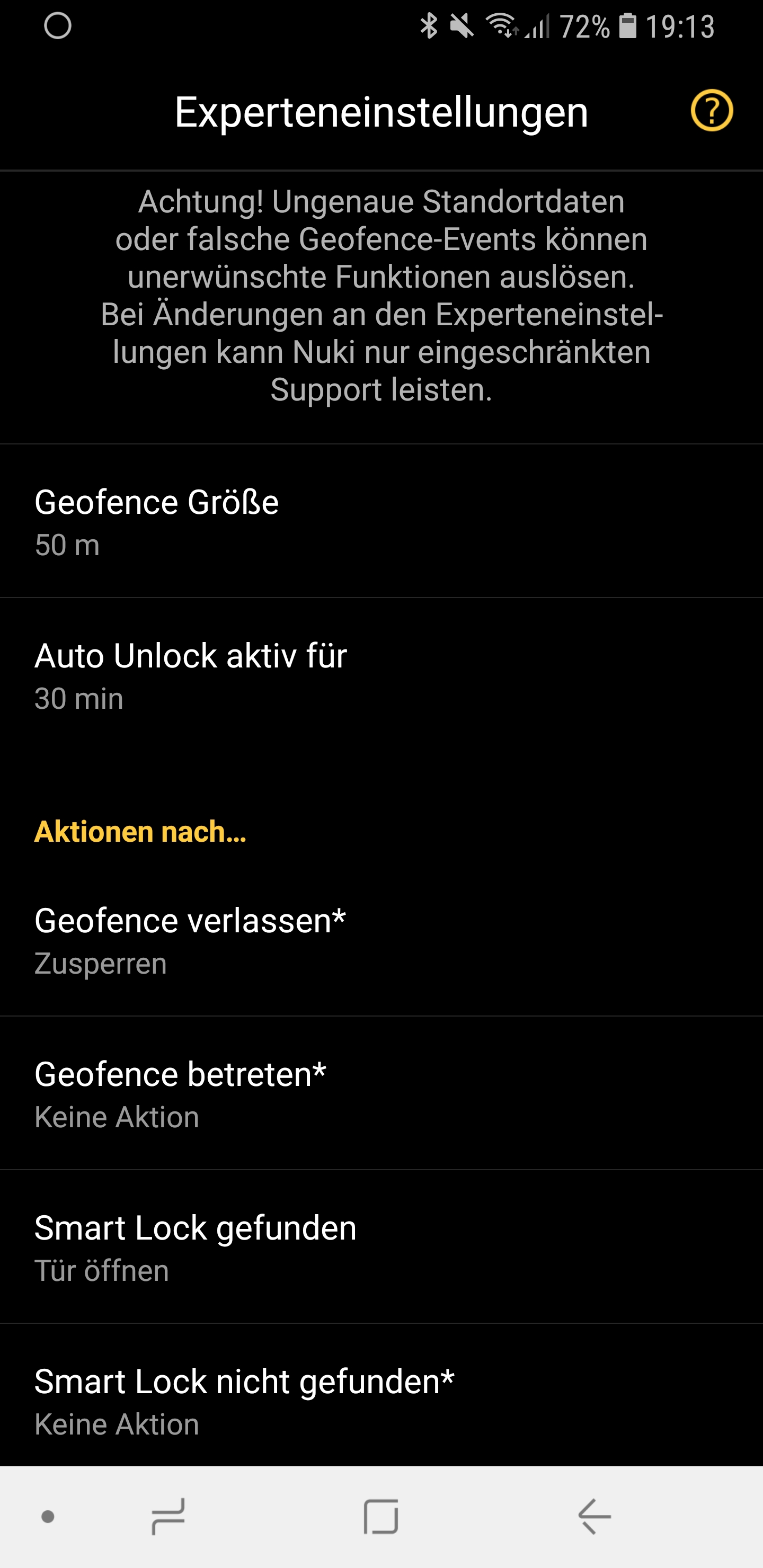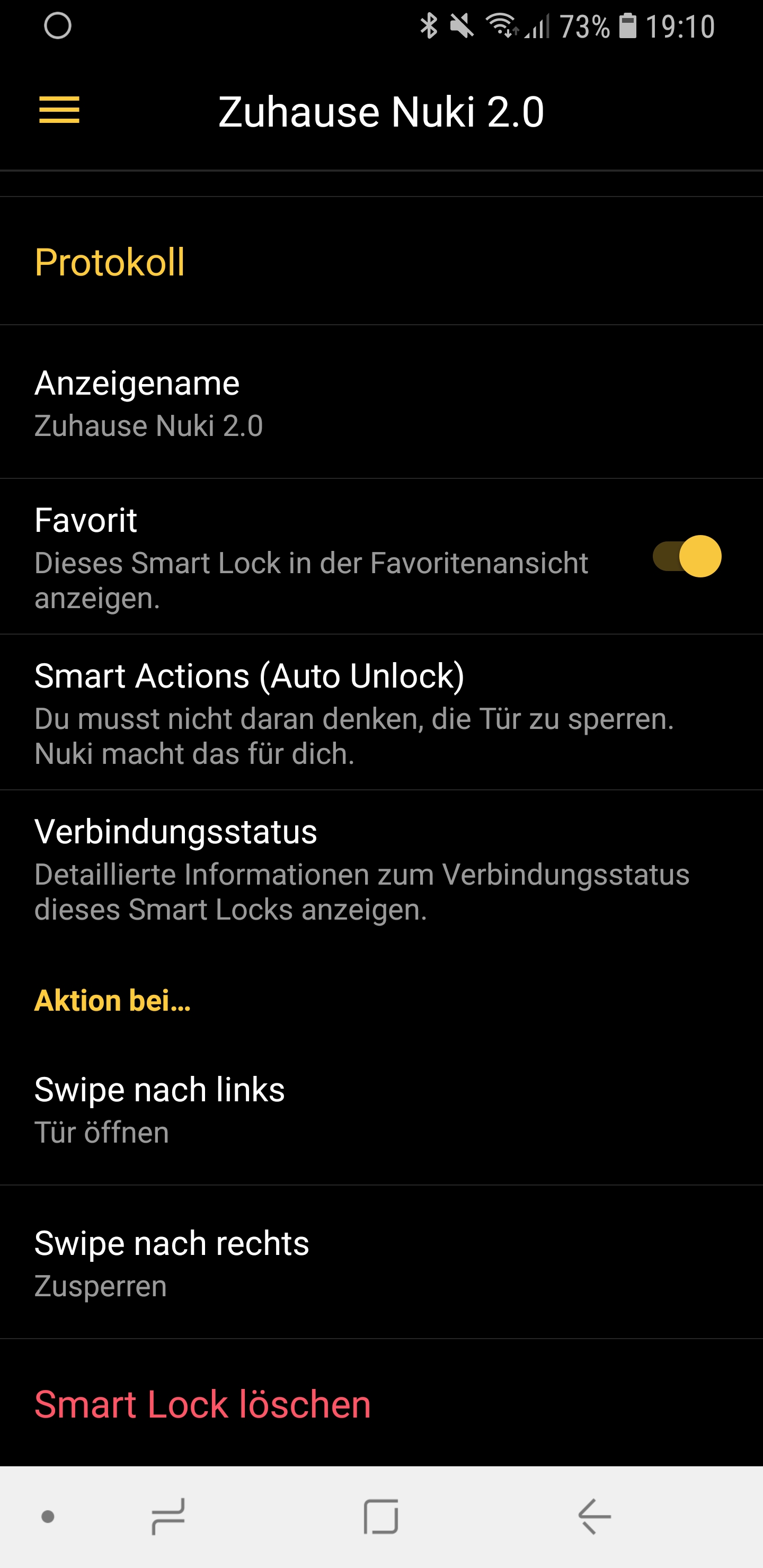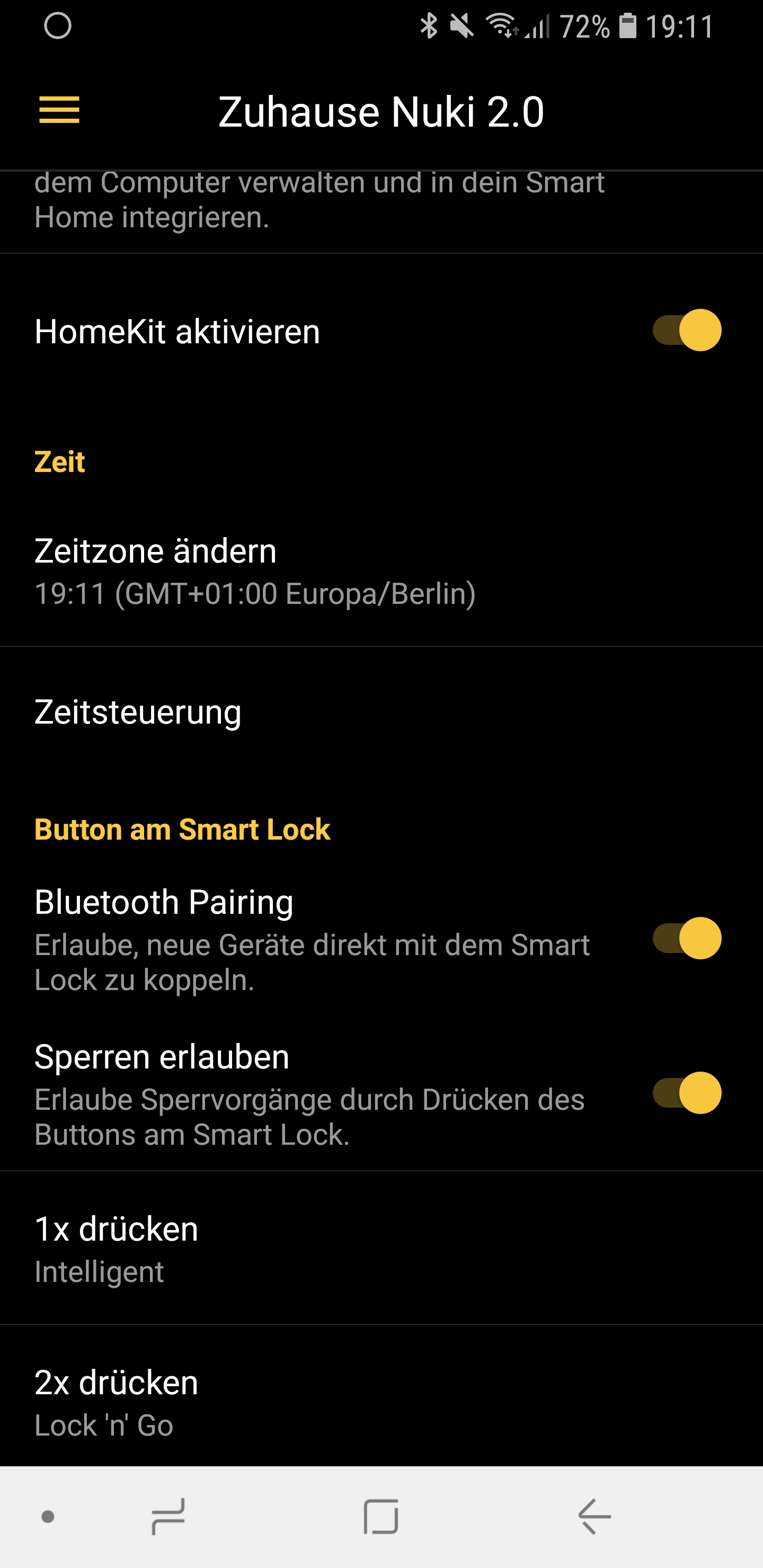 Es gibt viele Möglichkeiten, wie man das Nuki Smart Lock die Tür verriegeln und wieder entriegeln lassen kann. Ich hingegen lasse sie den Tag über aber immer offen. Erst zur Nacht, wenn ich schlafen gehe, lasse ich sie mit einer weiteren Routine, wieder verschließen. Man könnte auch zeitversetzt, nach einem Auto Unlock, die Tür automatisch hinter sich zuschließen lassen. Ich finde das allerdings nicht so praktisch. Manchmal möchte man einfach nur tagsüber schnell den Müll runter bringen und steht dann innerhalb der Wohnung vor verschlossener Tür. Das ist mir einfach zu umständlich.