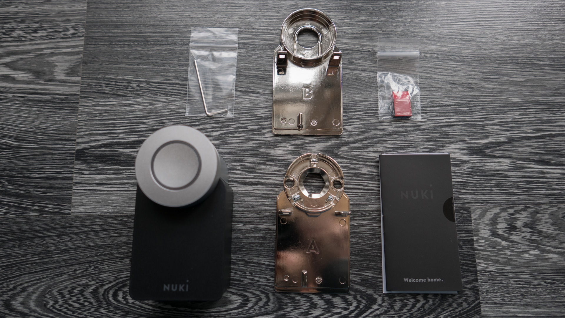 Neben dem Smart Lock selbst, wird alles mitgeliefert, was man zur Montage und ersten Inbetriebnahme benötigt. Darunter fallen: die Montageplatten (2 Versionen), Batterien, Werkzeug, der Türsensor, sowie eine kurze Anleitung.Die Details des Nuki Smart Lock 2.0