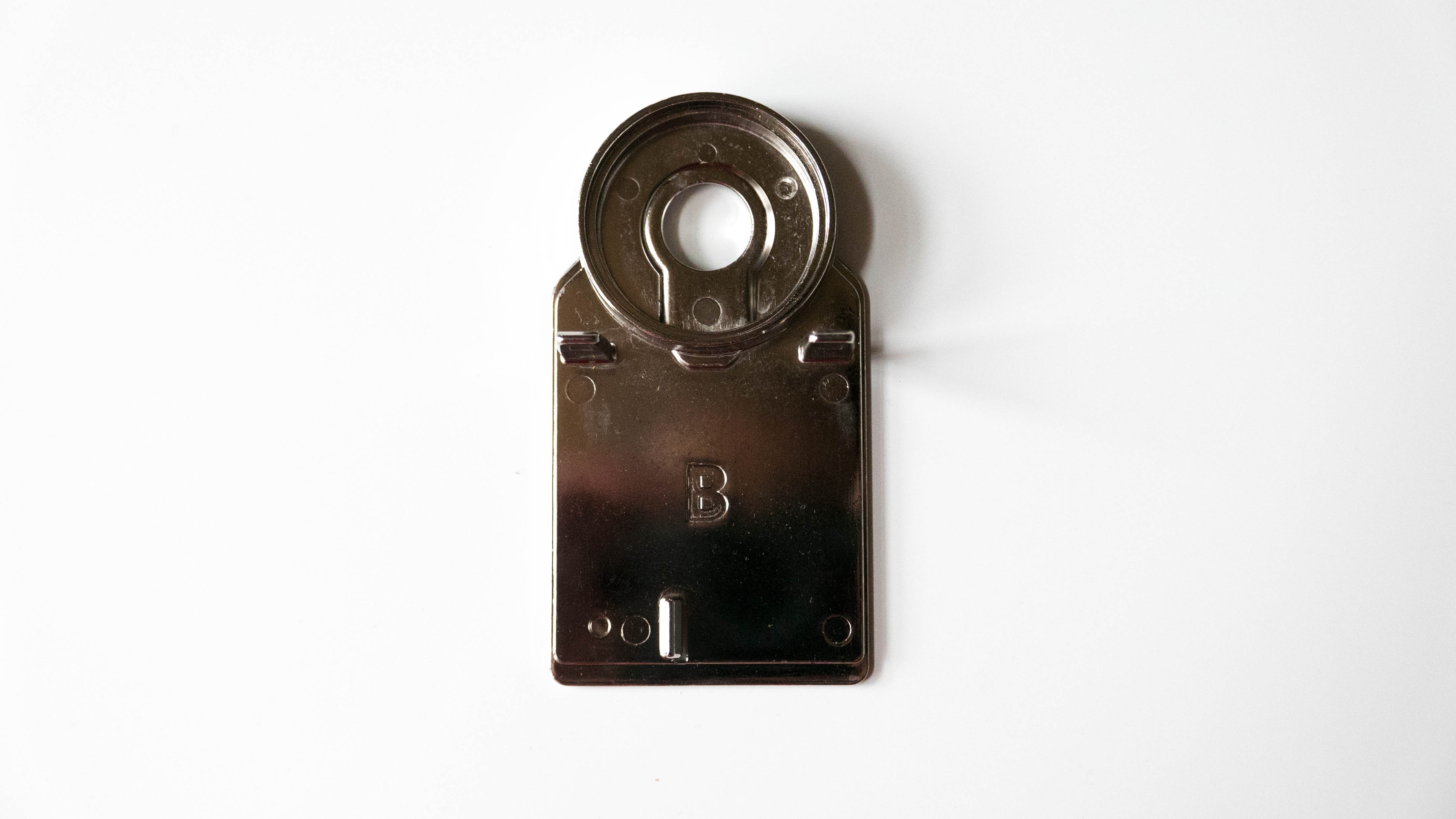 Neben dem Schloss selbst, befinden sich zwei Adapterplatten im Lieferumfang. Platte A ist zur Montage an einem Türschloss, dessen Zylinder ein wenig heraus ragt. Platte B ist zum kleben. Diese lässt sich an „herkömmlichen“ Schließzylindern“ befestigen. In meinem Fall habe ich mich aber für Variante A entschieden.
