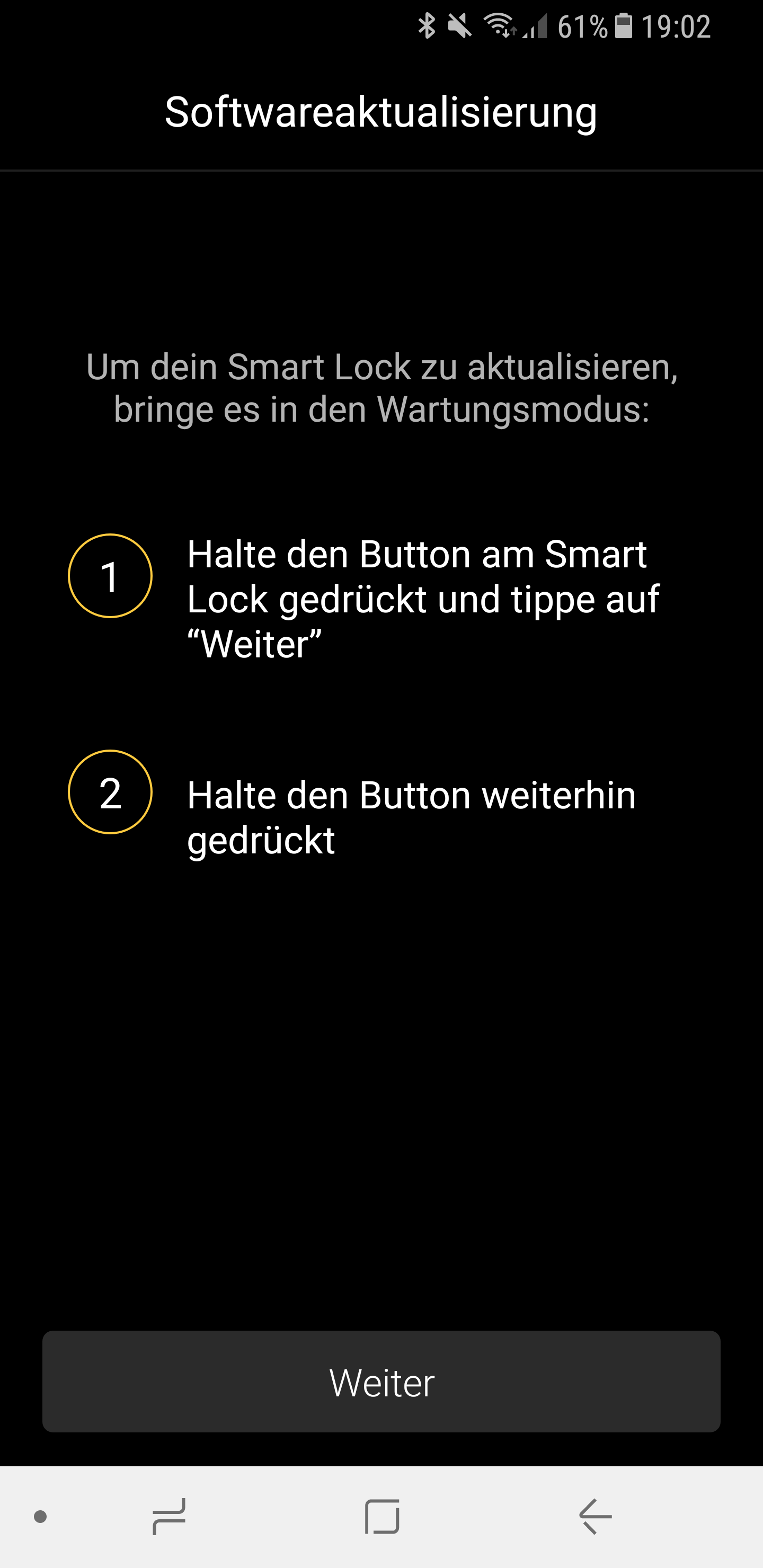 - Befolgt die Anweisungen auf der App und haltet den Butten am Türschloss gedrückt,…