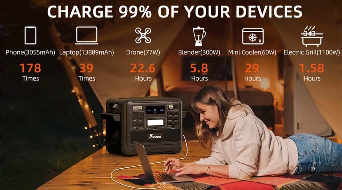 Mit einer Power Station habt ihr eurer eigene Energiequelle immer dabei und könne sogar kostenlose Sonnenenergie speichern und in vielen Alltagssituationen nutzen. Die Power Station F2400 vom Hersteller Fossibot besitzt eine Kapazität von 2.048 Wattstunden, eine Ausgangsleistung von 2.400 W (Peak 4.600 W) und ist damit ein richtiges Kraftpaket fürs Camping, im Job oder bei vielen anderen Freizeitaktivitäten.