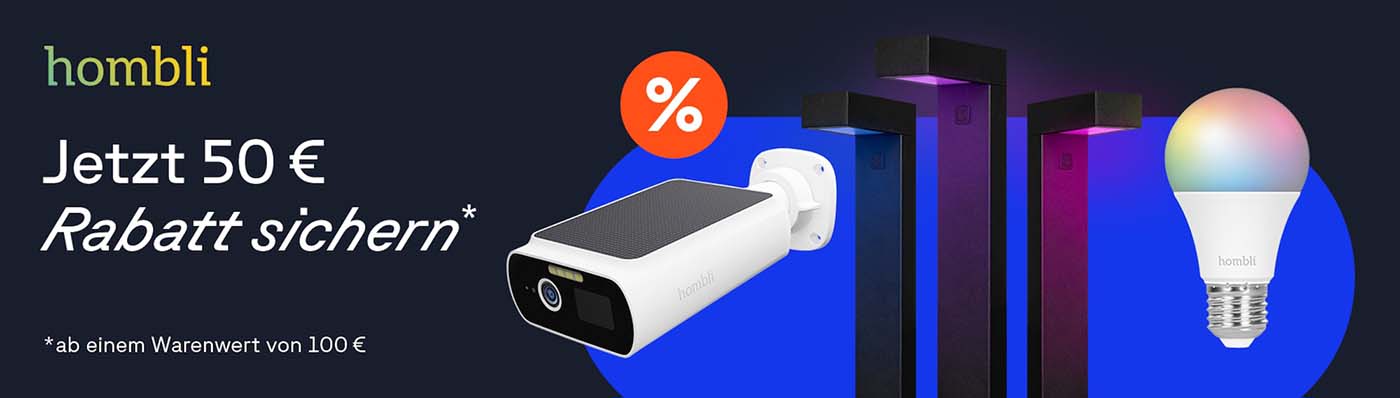 Bei Cyberport erhaltet ihr 50 Euro Rabatt auf smarte Produkte der Marke Hombli. Hier gibt es smarte Leuchten, Überwachungskameras und mehr!