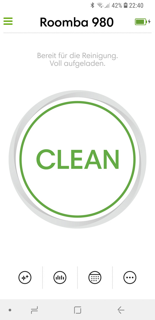 - Hier sehen wir nun die Startseite der iRobot App.