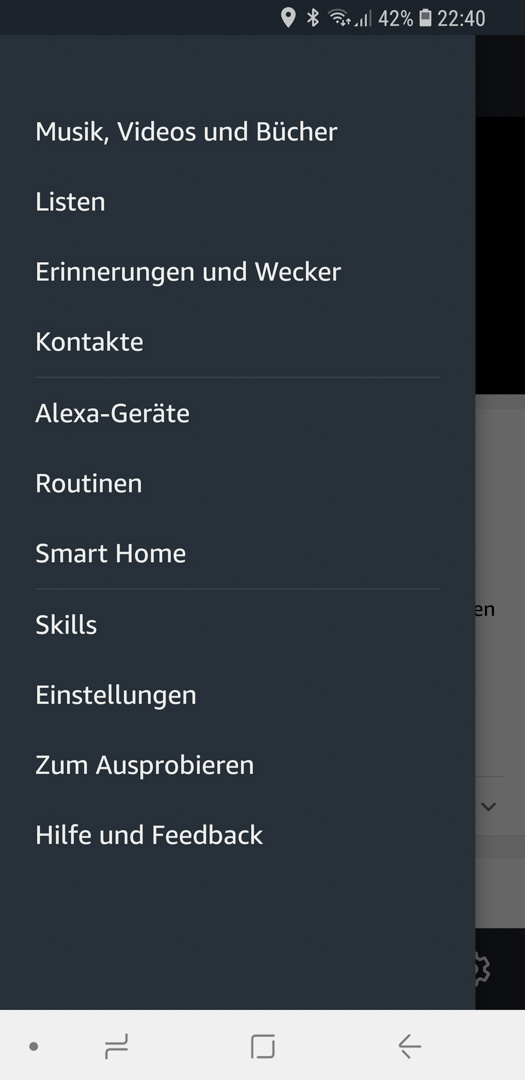 - Über das seitliche Menü, navigieren wir nun zu den Alexa Skills.