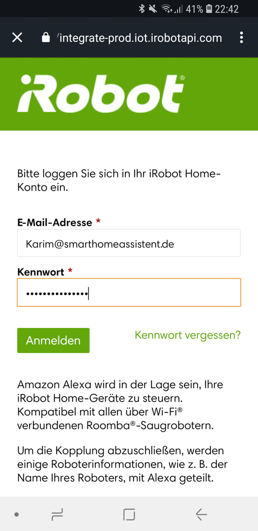 - Ihr habt Zugriff auf eure Zugangsdaten des iRobot Accounts, den ihr zu Beginn bei der Einrichtung eures Roombas angelegt habt!